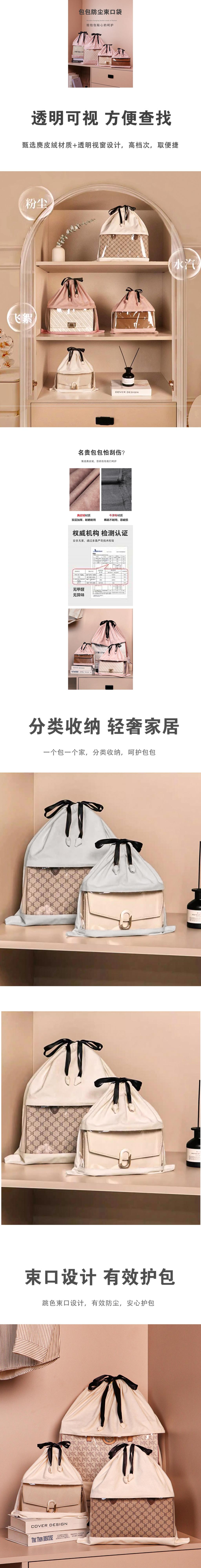 스웨이드 가방 방진 가방 투명 보관 가방 럭셔리 가방 보호 가방 커버 번들 여성용 가방 마무리 가방