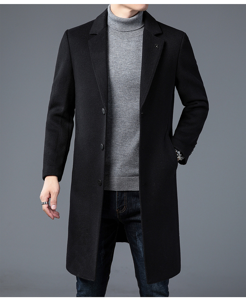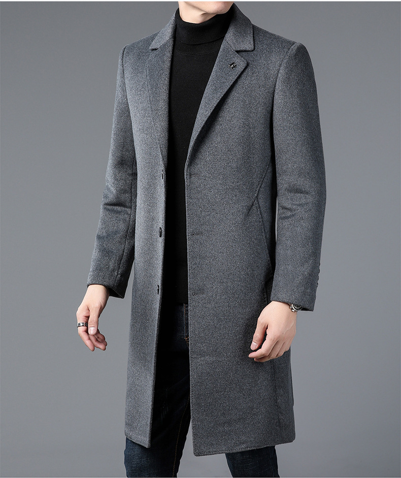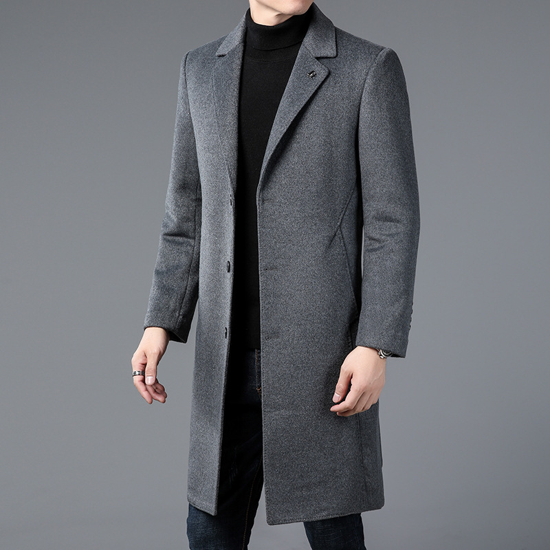 도매 하이 엔드 가을/겨울 양면 트위드 중년 캐시미어 코트 남성용 롱 세트 칼라 울 패딩 아빠 코트스토어 가기