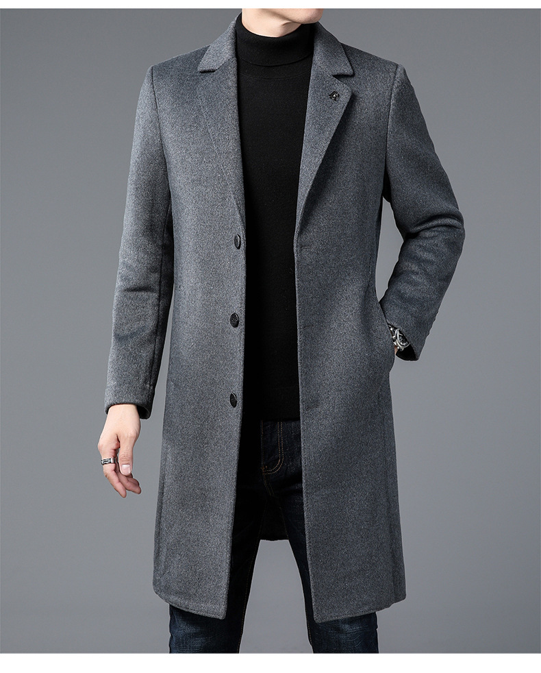 도매 하이 엔드 가을/겨울 양면 트위드 중년 캐시미어 코트 남성용 롱 세트 칼라 울 패딩 아빠 코트