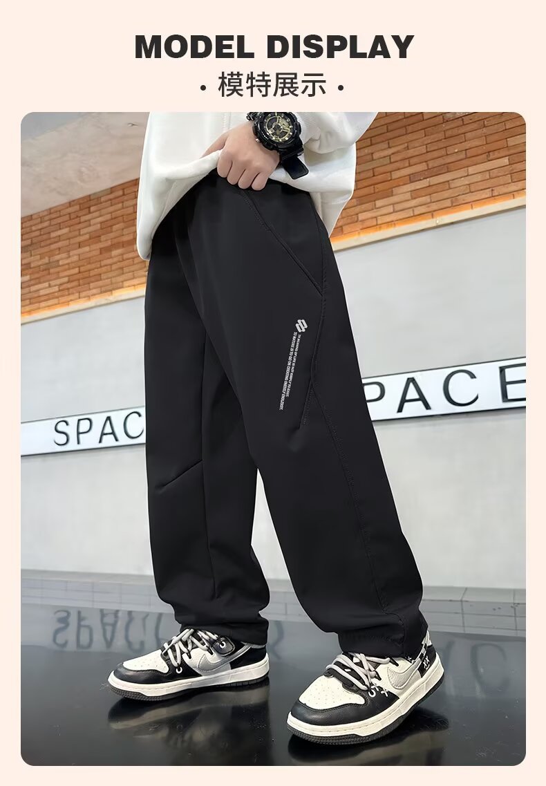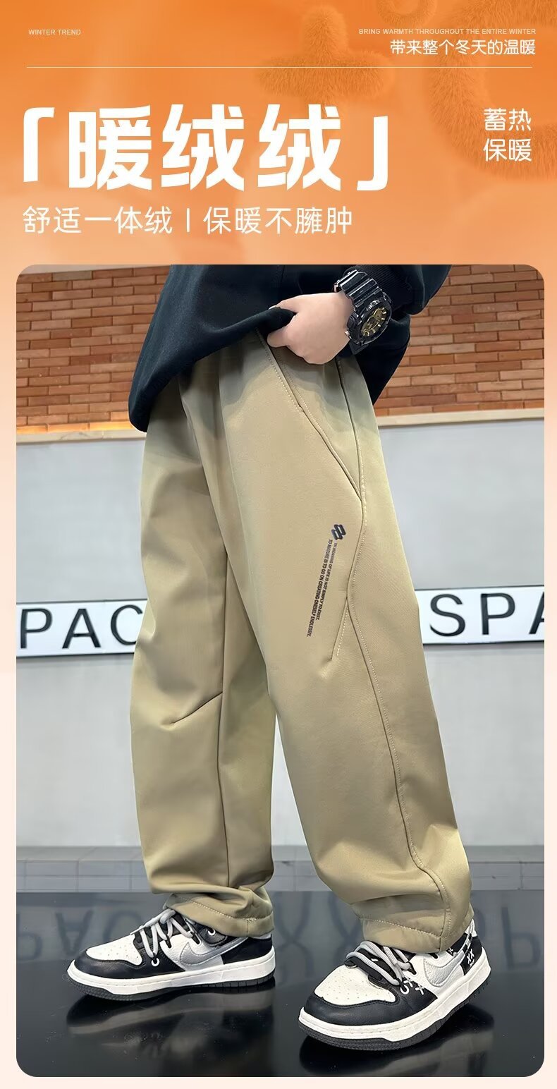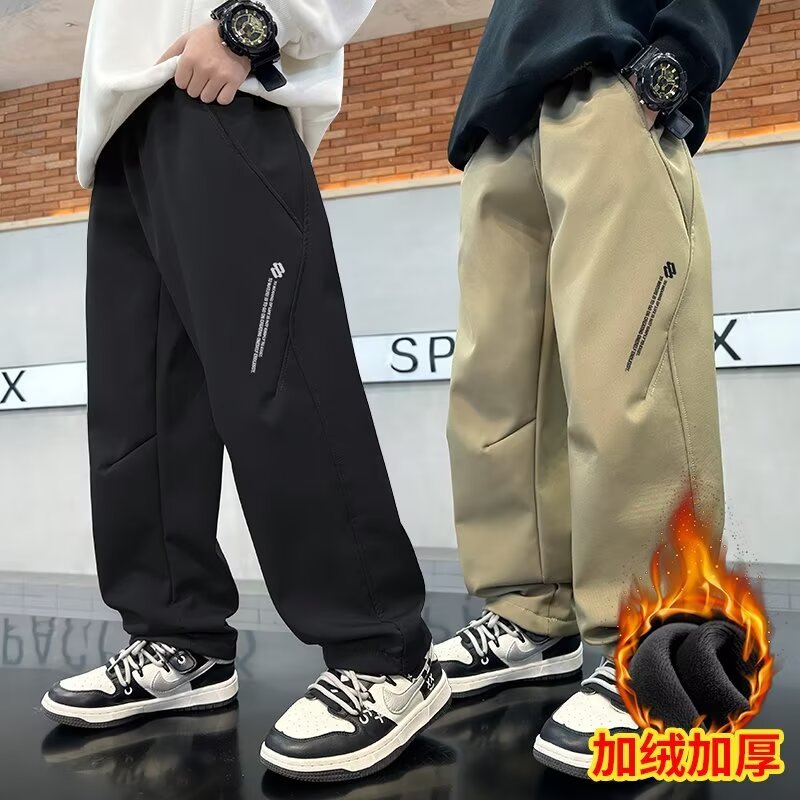 남학생 바지 바지 2024 년 새로운 큰 어린이 가을과 겨울 원피스 기모 두꺼운 방수 스포츠 바지스토어 가기