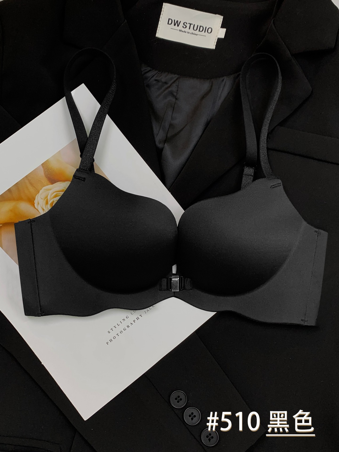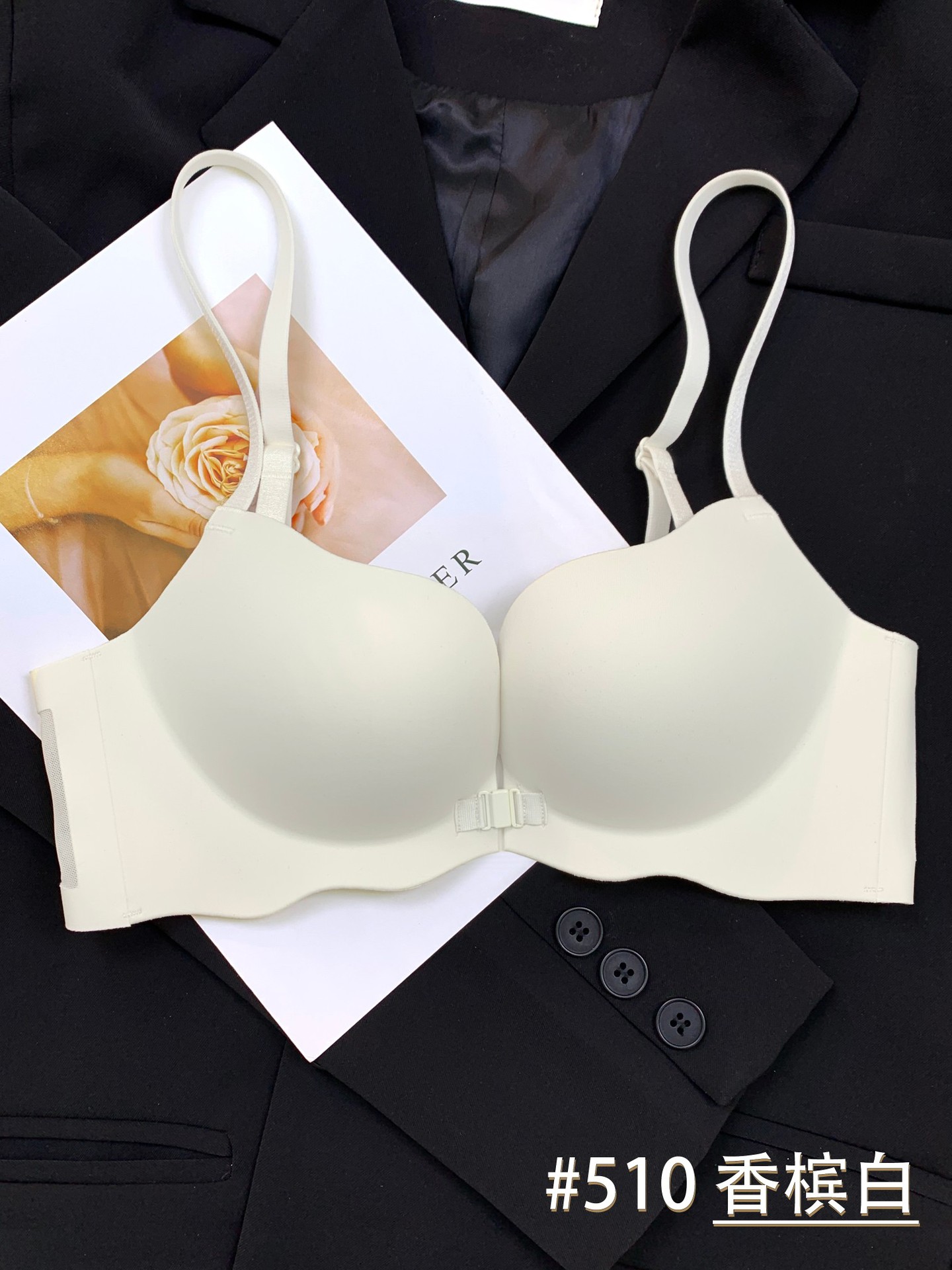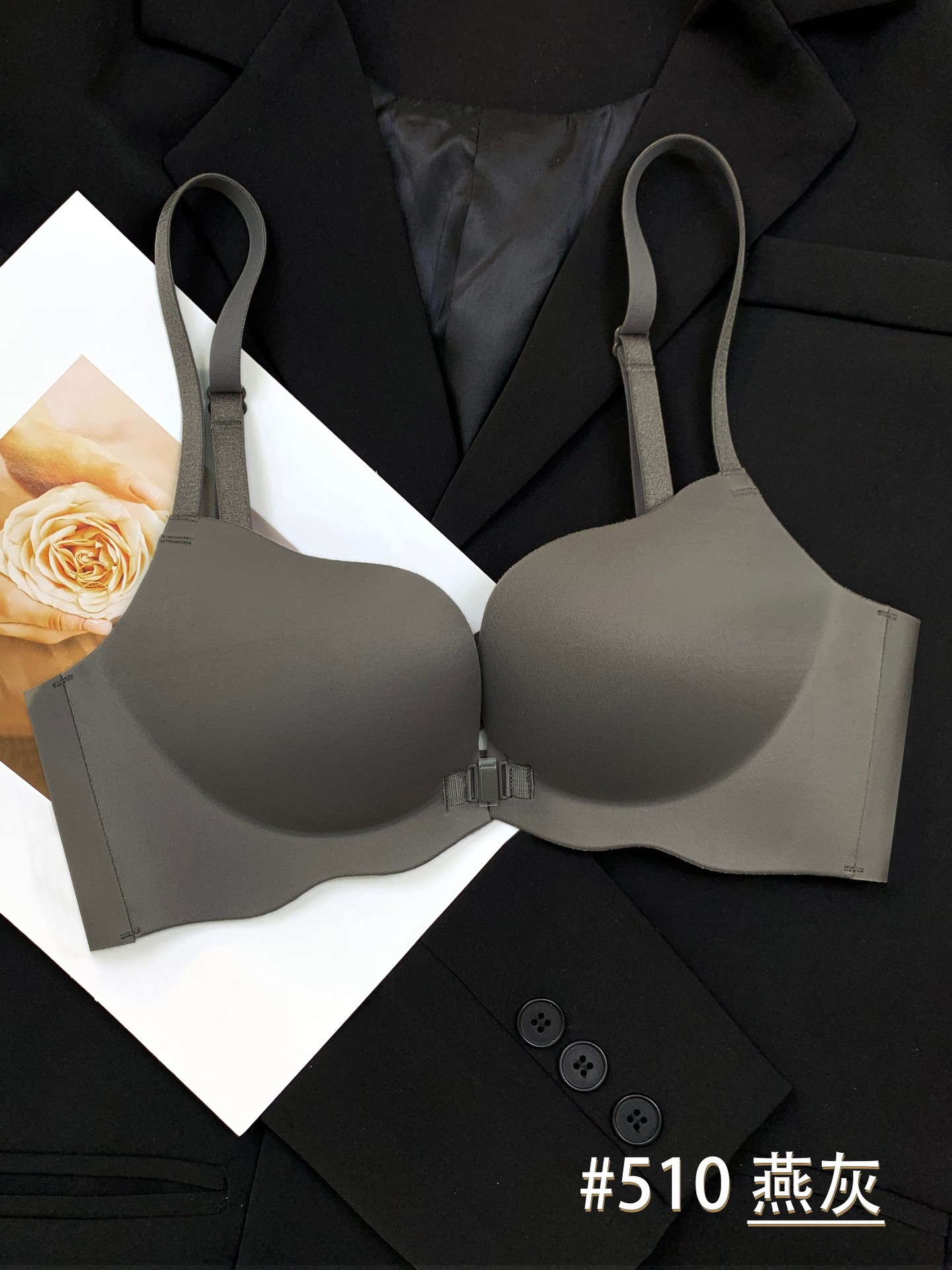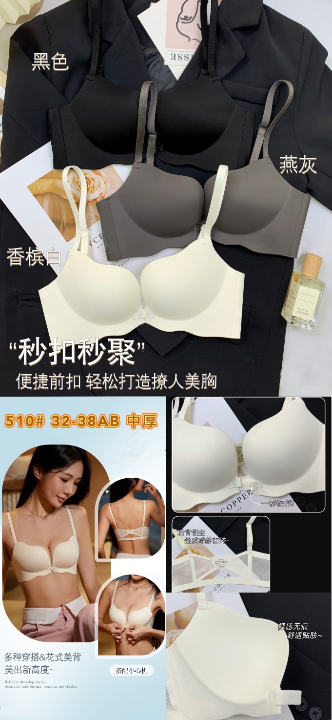 510 Boershuang Kunyuan 미국 백 속옷 여성의 작은 가슴 푸시 업 트레이드리스 프론트 버클 프리 스틸 링 트레이드리스 얇은 브래지어