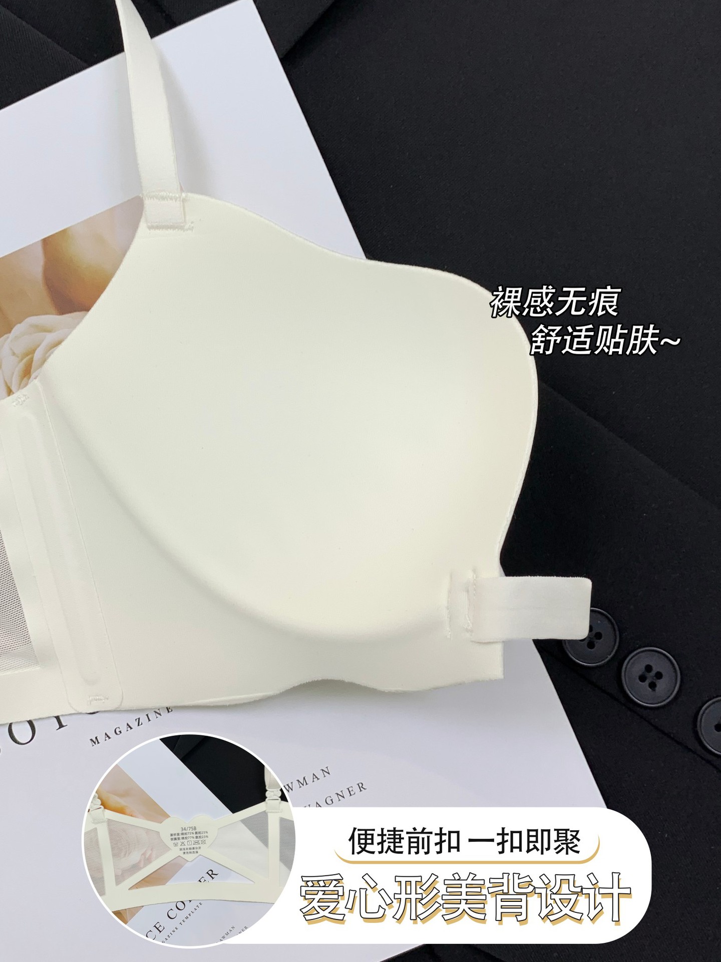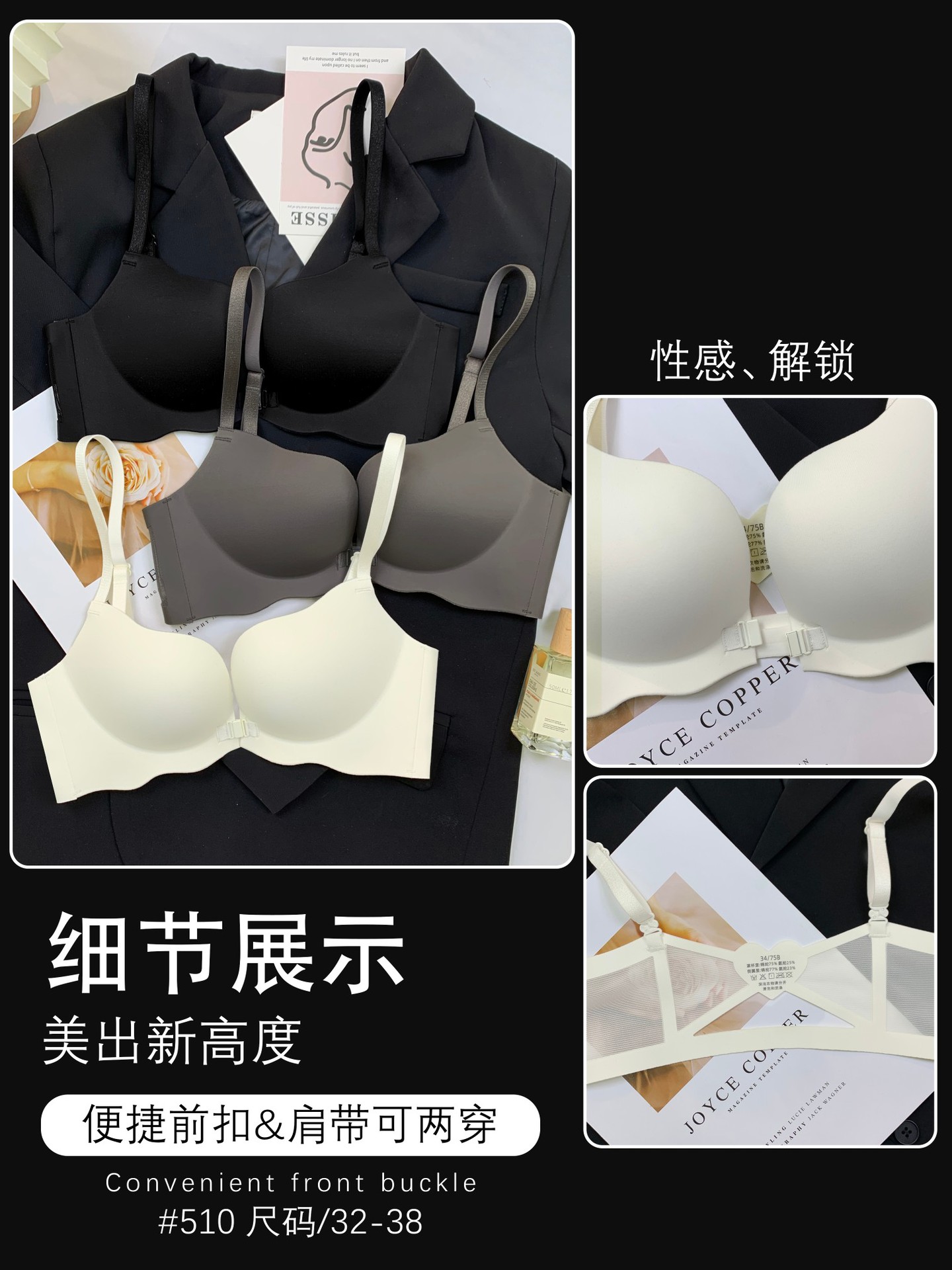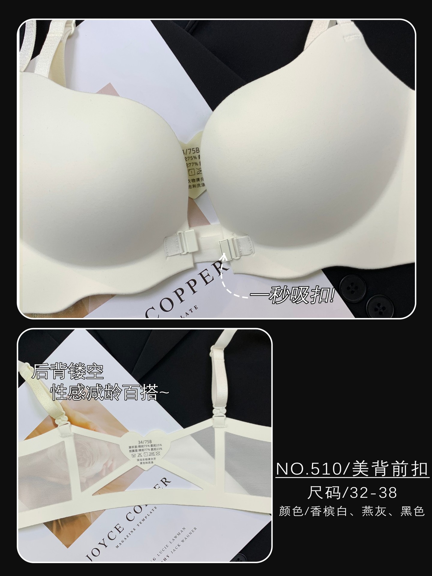 510 Boershuang Kunyuan 미국 백 속옷 여성의 작은 가슴 푸시 업 트레이드리스 프론트 버클 프리 스틸 링 트레이드리스 얇은 브래지어