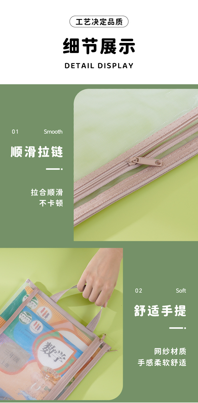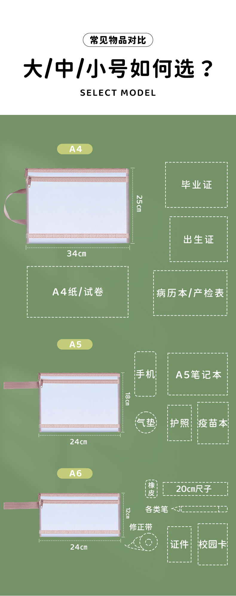 A4 투명 메쉬 이중 지퍼 가방 학생용 대용량 시험지 보관 가방 A5 A6 파일 가방