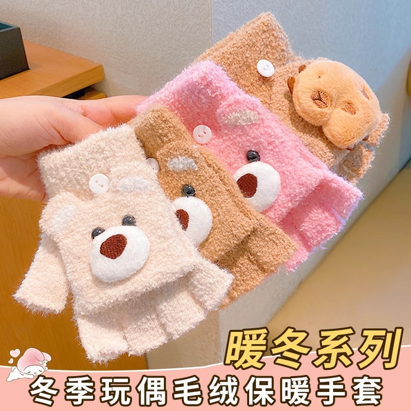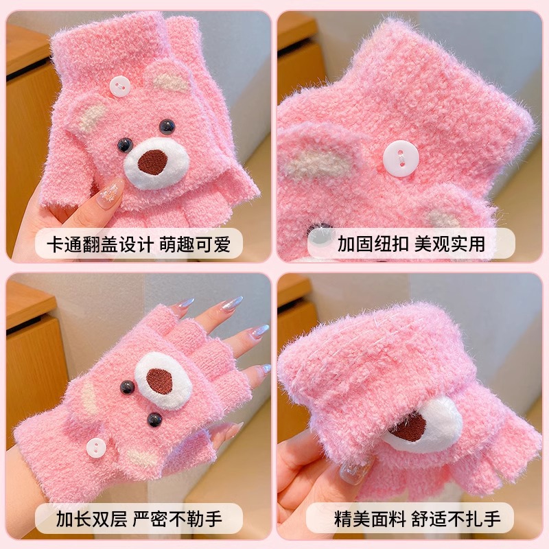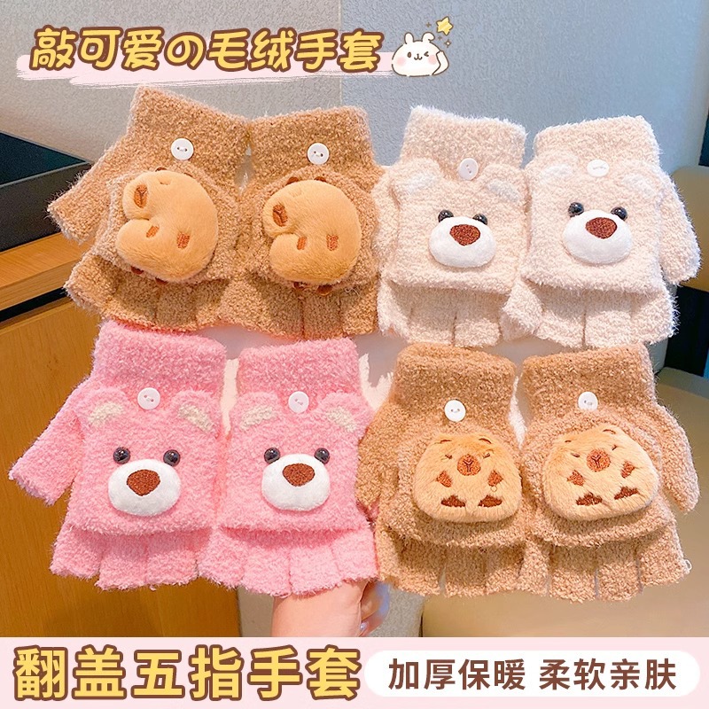 카피발라 아기의 장갑 겨울 따뜻한 어린이 플립 커버 반 손가락 귀여운 소녀의 만화 류 다섯 손가락 두꺼운스토어 가기