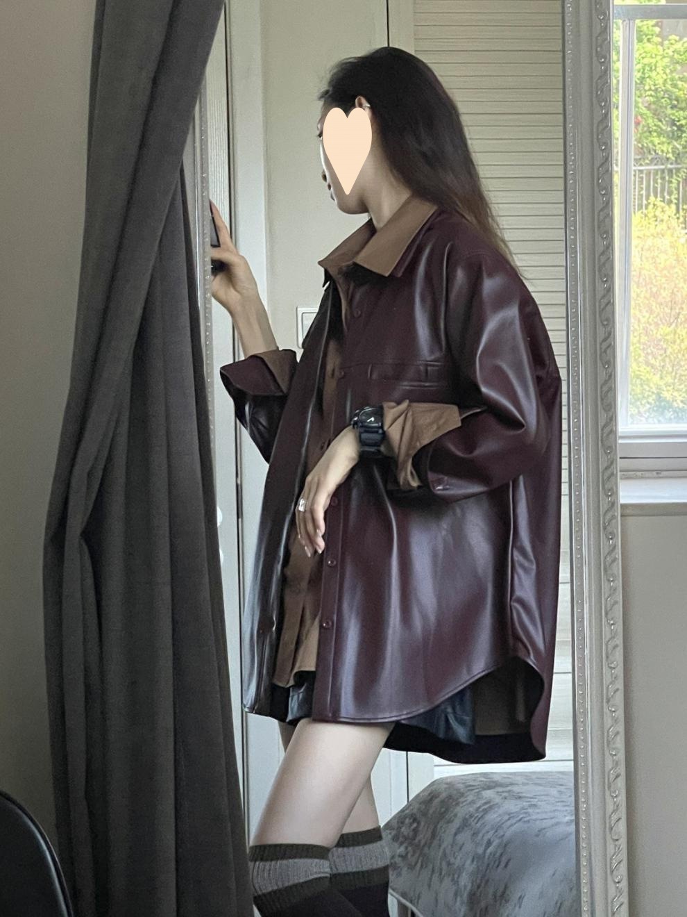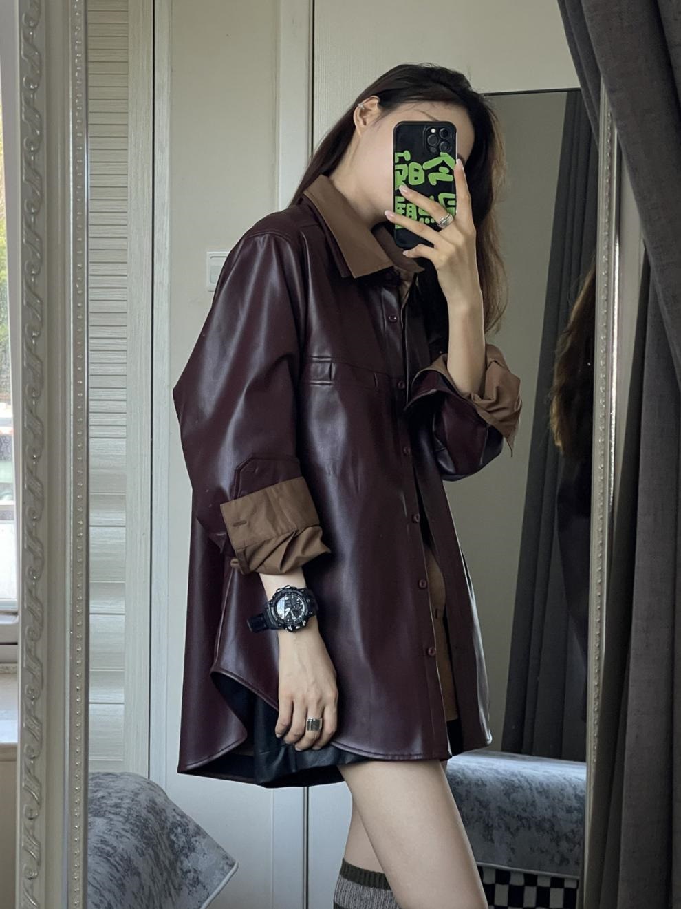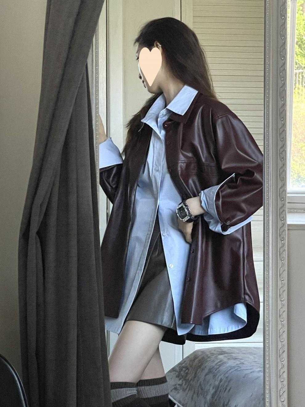 빈티지 포도 퍼플 PU 가죽 자켓 여성 가을 2024 패션 새로운 미국 패션 재킷 올 매치 셔츠스토어 가기