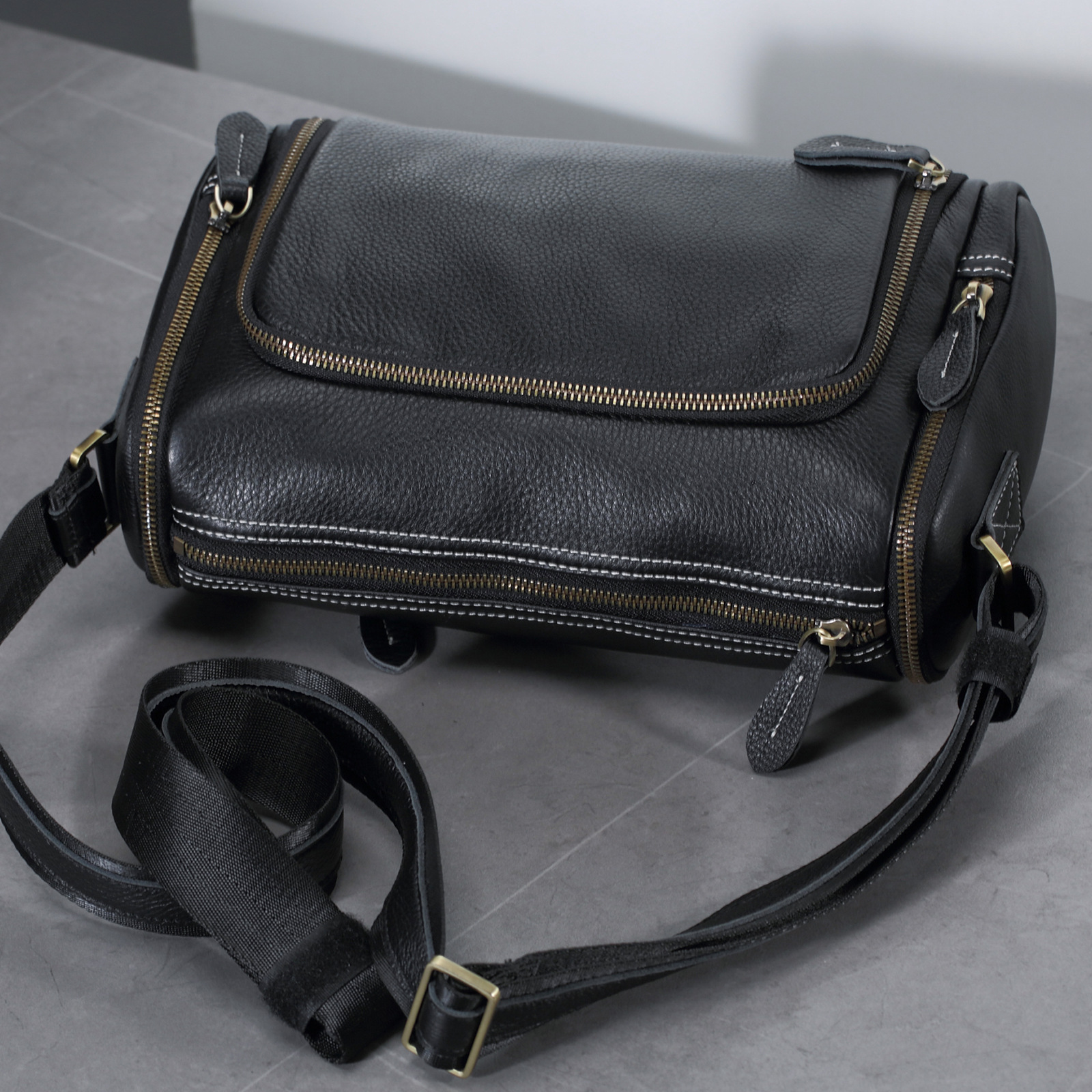 국경 간 빈티지 수제 남성 가방 정품 가죽 실린더 가방 대용량 어깨 가방 소프트 탑 레이어 카우보이 남성 크로스 바디 백스토어 가기