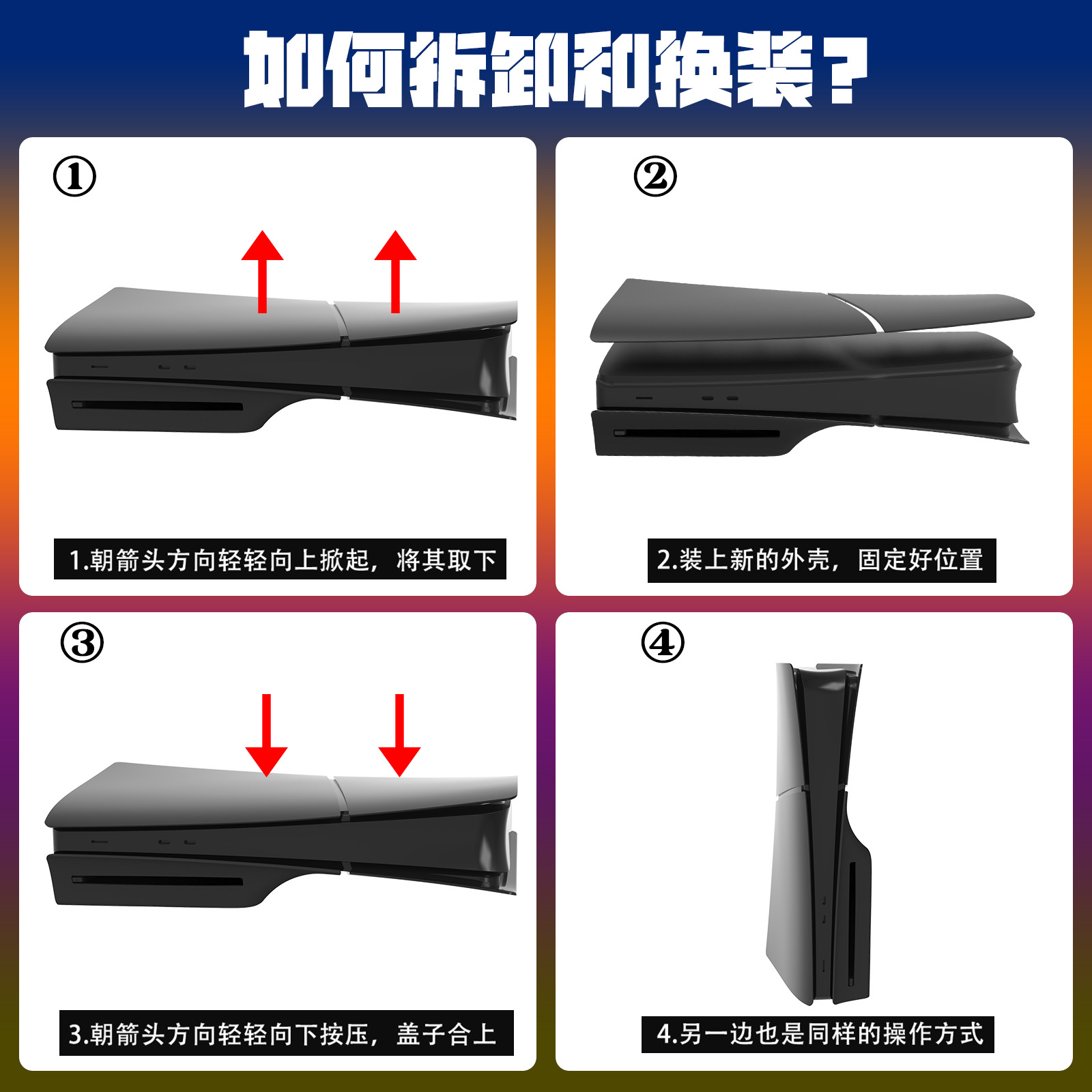 跨境专供PS5 Slim/PS5 Pro碳纤维替换外壳游戏主机保护壳拆卸式外壳