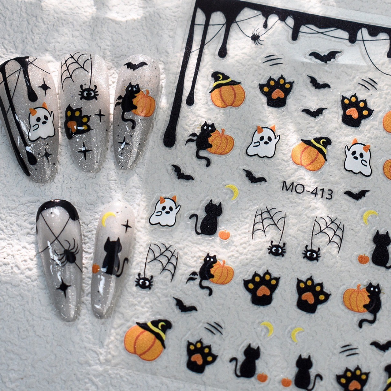 20.24 백만 할로윈 네일 귀여운 만화 유령 거미 웹 박쥐 호박 초박형 입체 접착 네일 아트 스티커