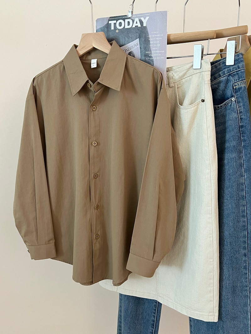 일본 스타일 순수 세척 코튼 멀티 컬러 게으른 스타일 긴팔 내부 셔츠 여성 플러스 사이즈 느슨한 버전 올 매치 선 스크린 탑스토어 가기