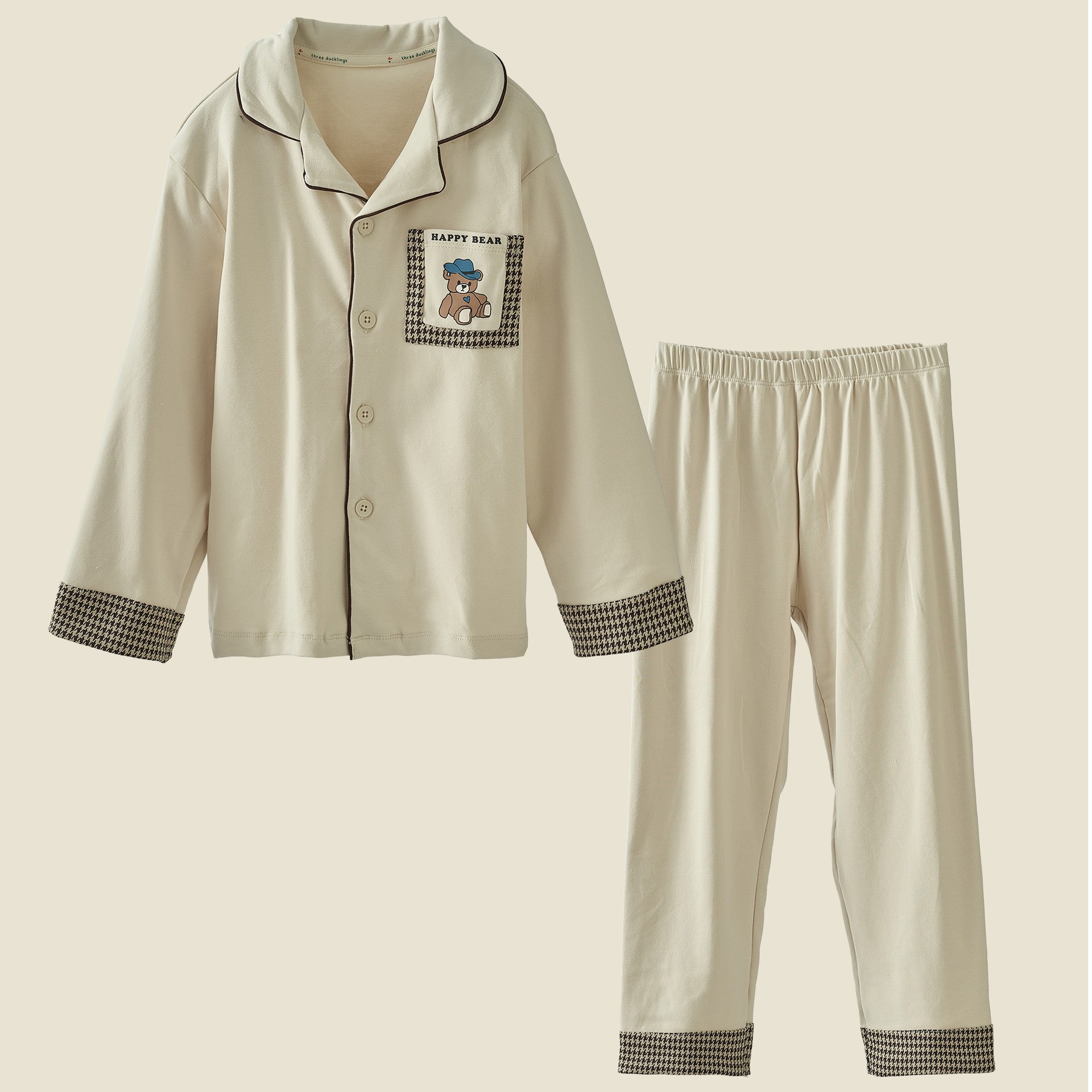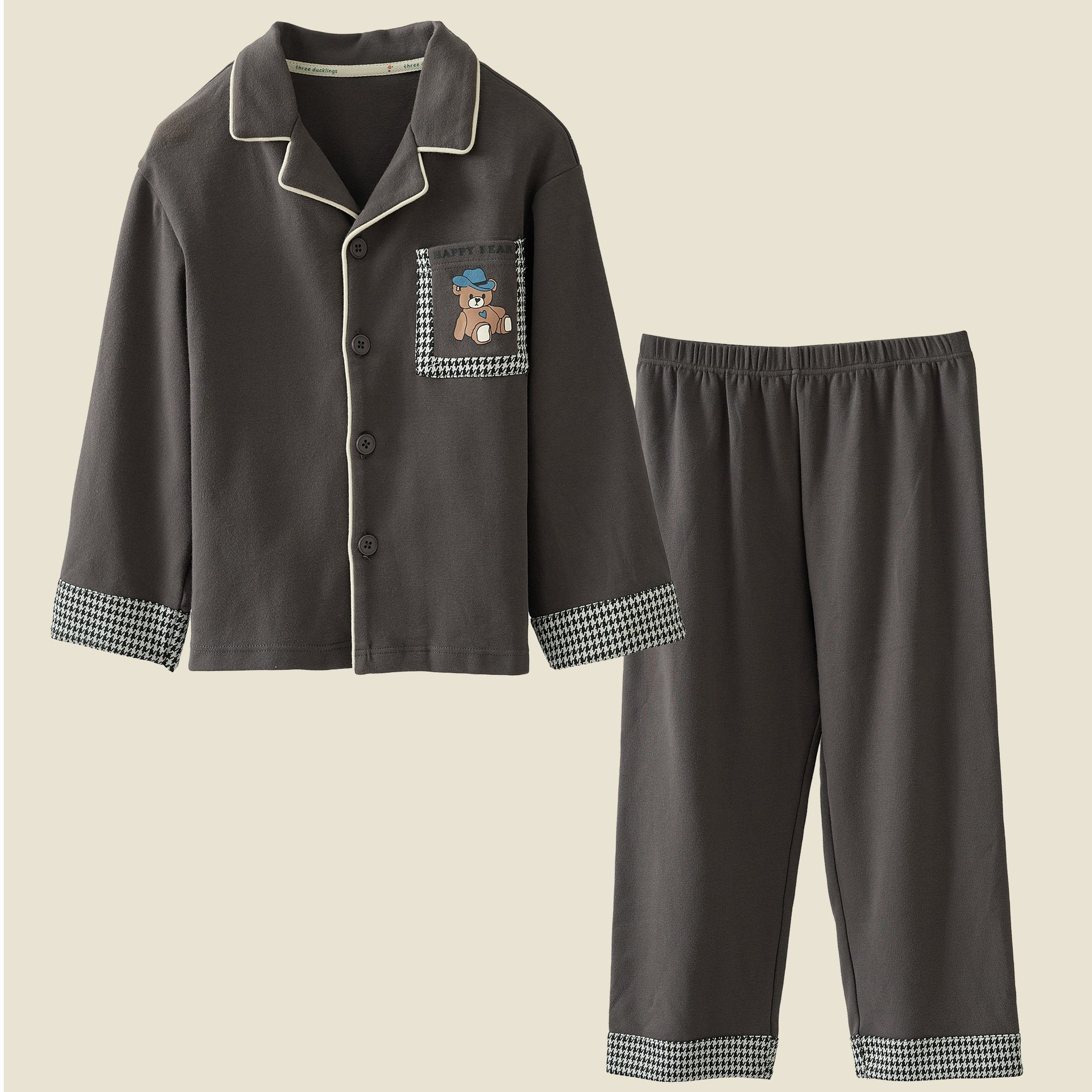 세 마리의 오리 어린이 면 홈웨어 세트 남아 여아 부모-자녀 스타일 잠옷 가을 겨울 남녀 공용 레트로 스타일