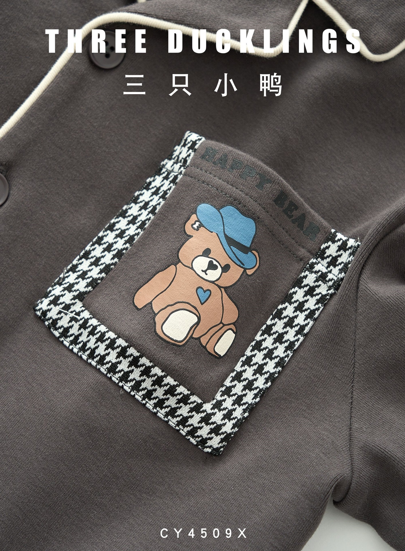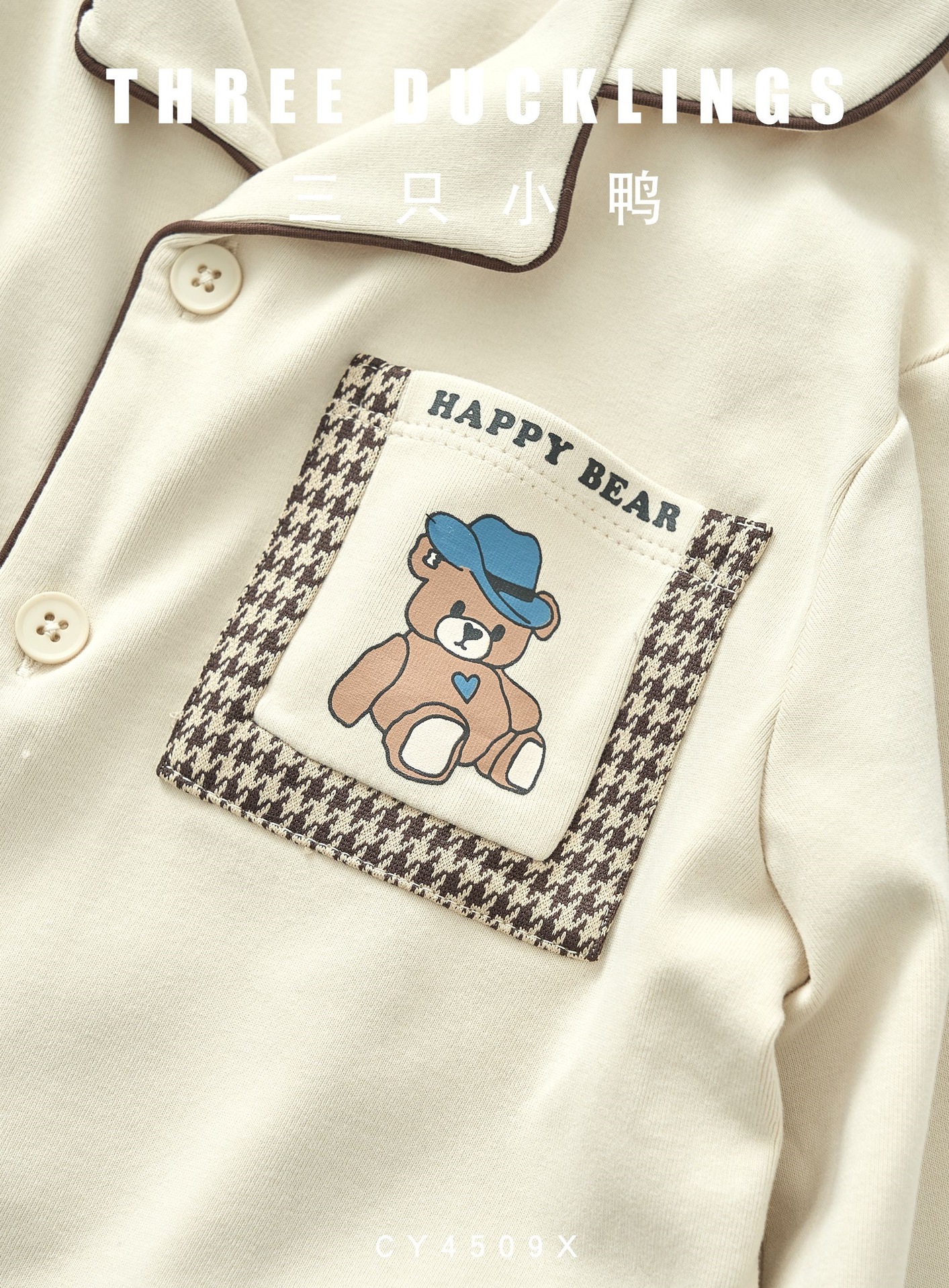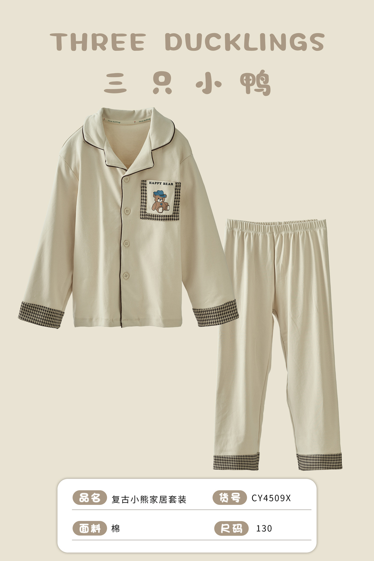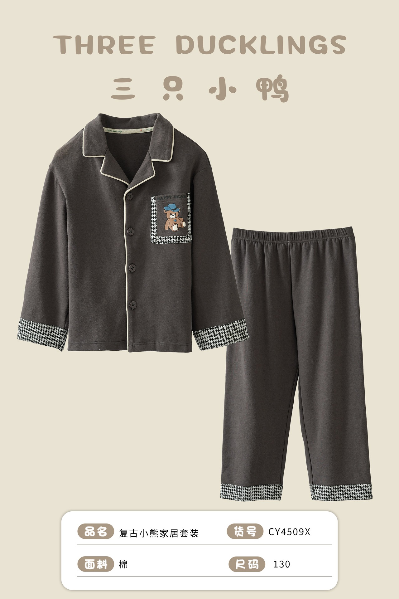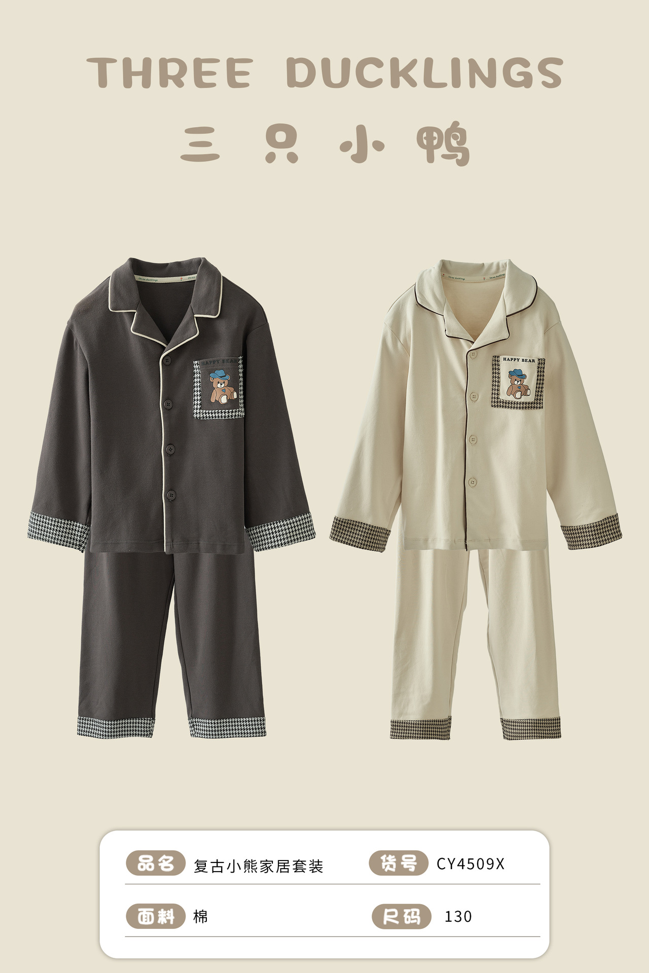 세 마리의 오리 어린이 면 홈웨어 세트 남아 여아 부모-자녀 스타일 잠옷 가을 겨울 남녀 공용 레트로 스타일스토어 가기