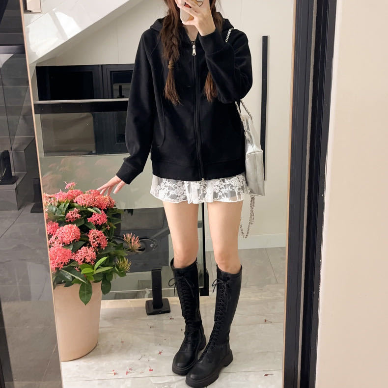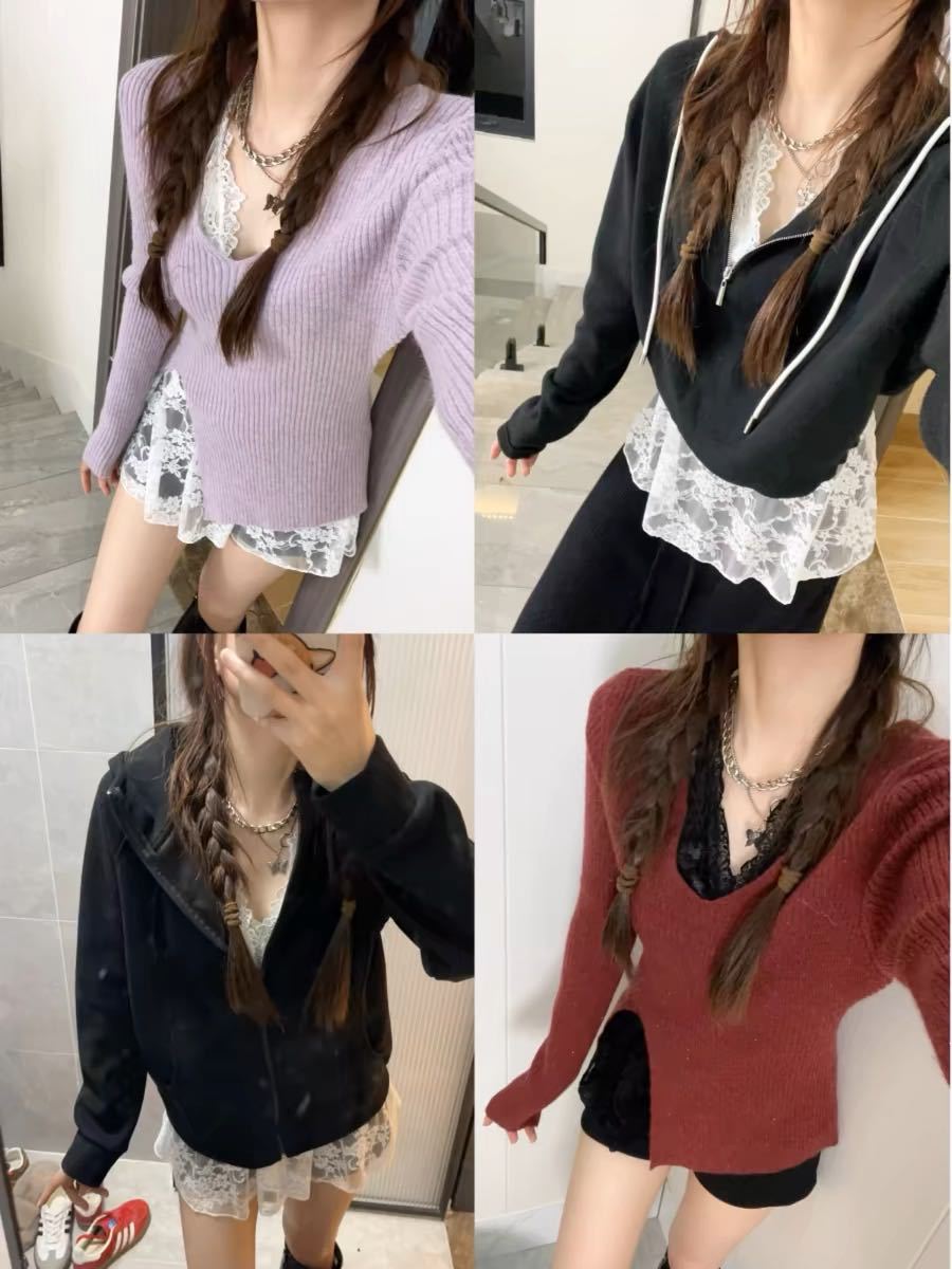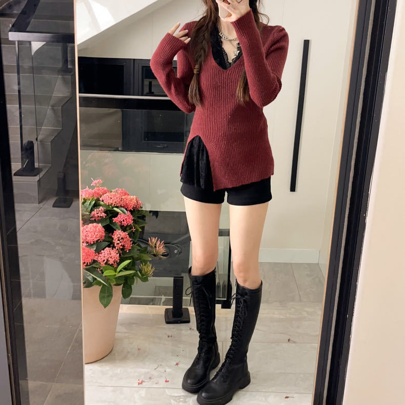 2038 새로운 한국 스타일 디자인 가을과 겨울 쌓인 착용 스타일 달콤하고 매운 목 슬리밍 레이스 레이스스토어 가기