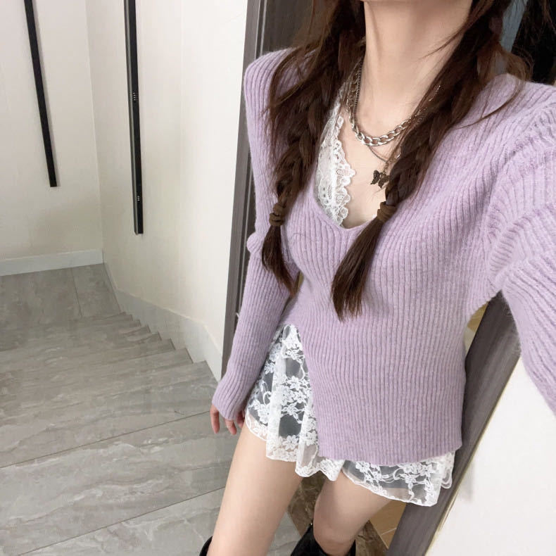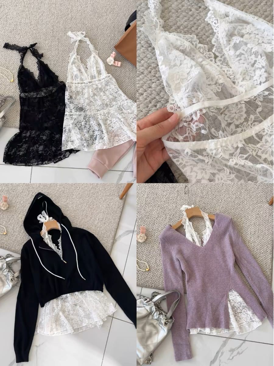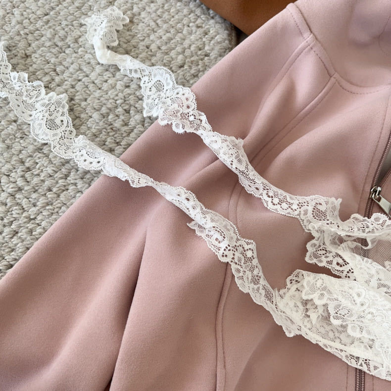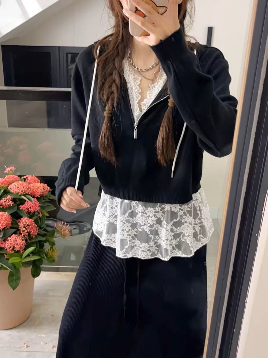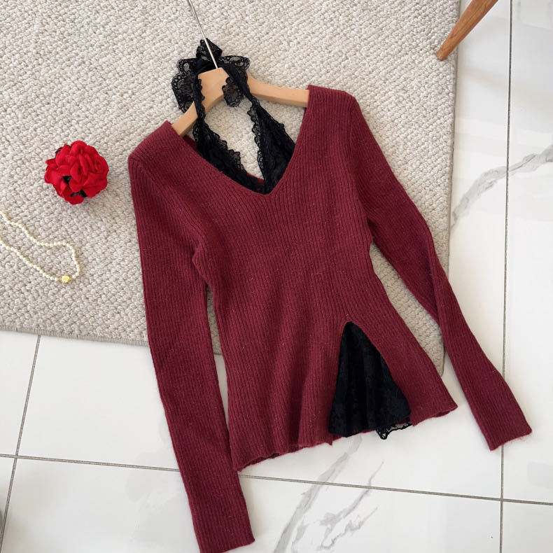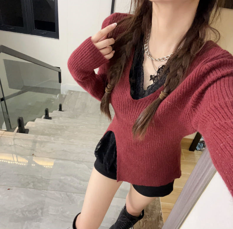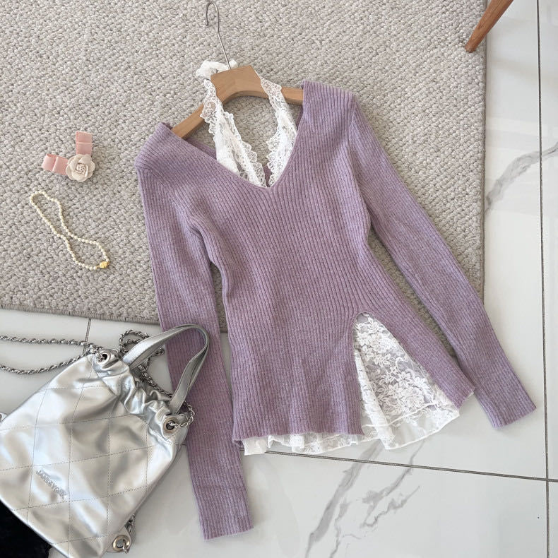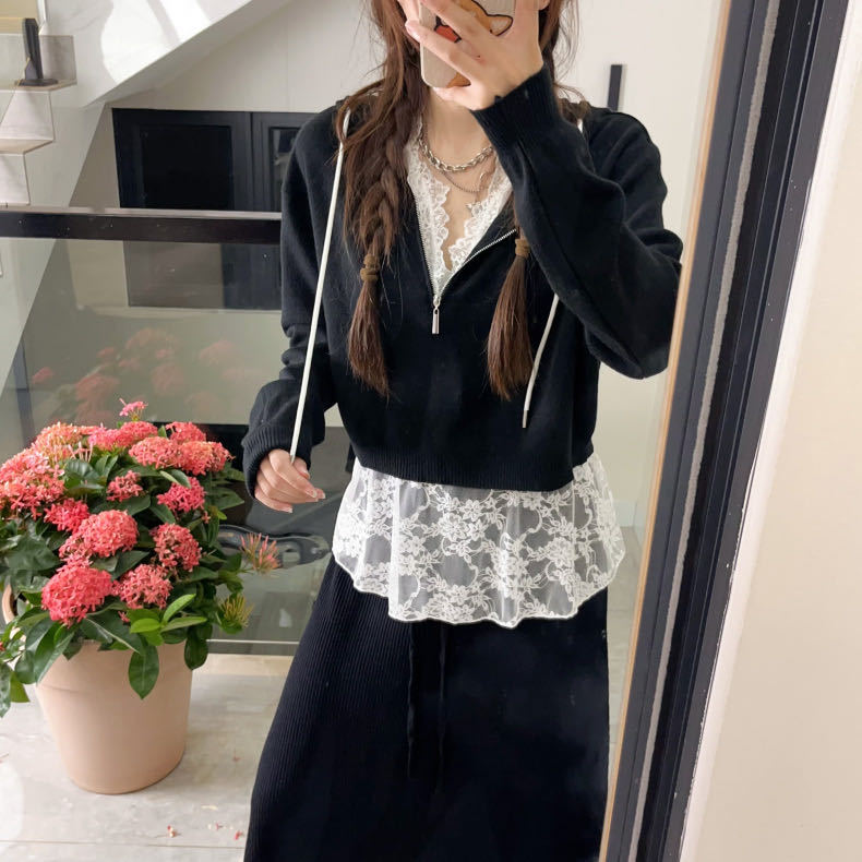 2038 새로운 한국 스타일 디자인 가을과 겨울 쌓인 착용 스타일 달콤하고 매운 목 슬리밍 레이스 레이스