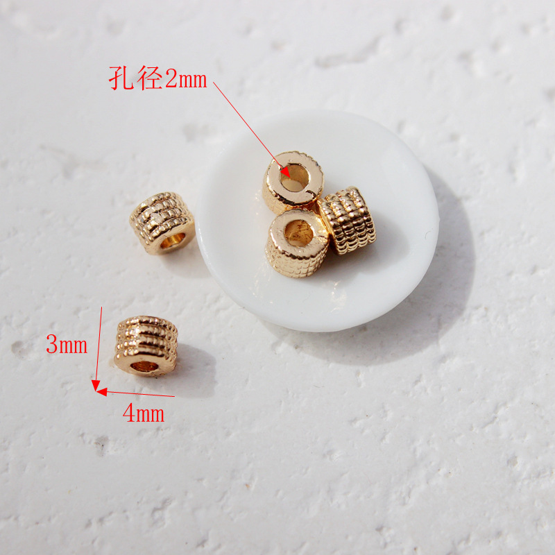 14K包金保色哑金扁圆形双面太阳花纹螺纹桶珠DIY手链项链饰品配件