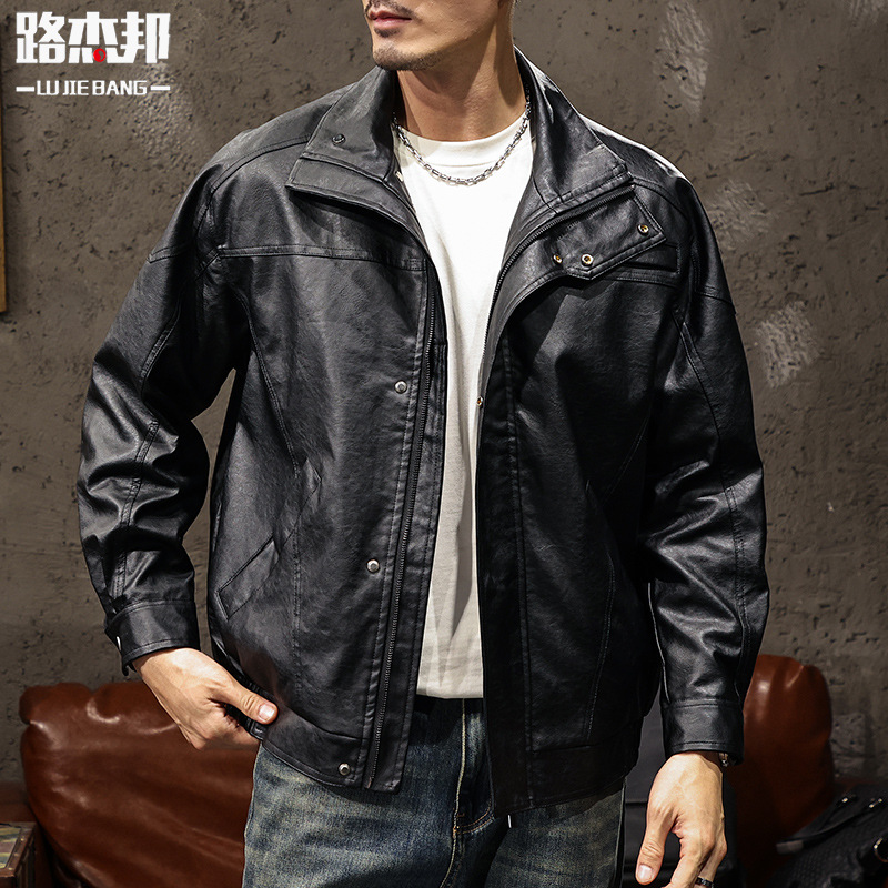 미국 복고풍 오토바이 칼라 가죽 자켓 남자의 2024 새로운 가을과 겨울 남자의 가을 PU 가죽 자켓스토어 가기