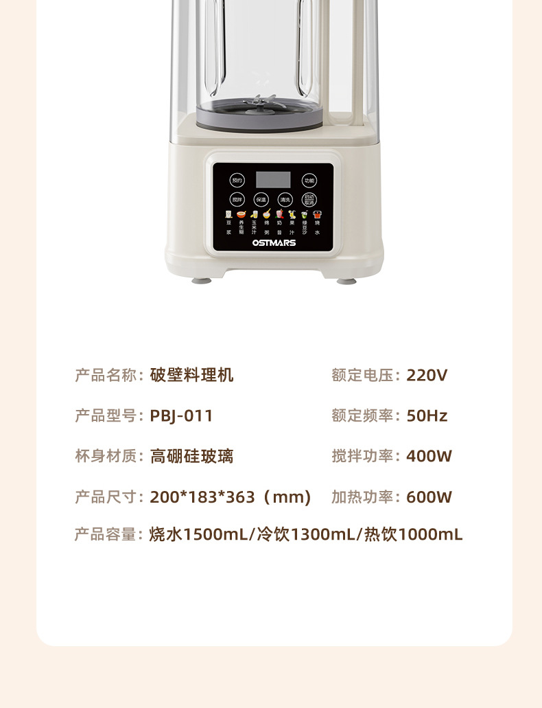 독일 OSTMARS 가벼운 소리 벽 차단기 다기능 가정용 3-4인 조리가 필요 없는 필터가 없는 두유 기계 조리 기계