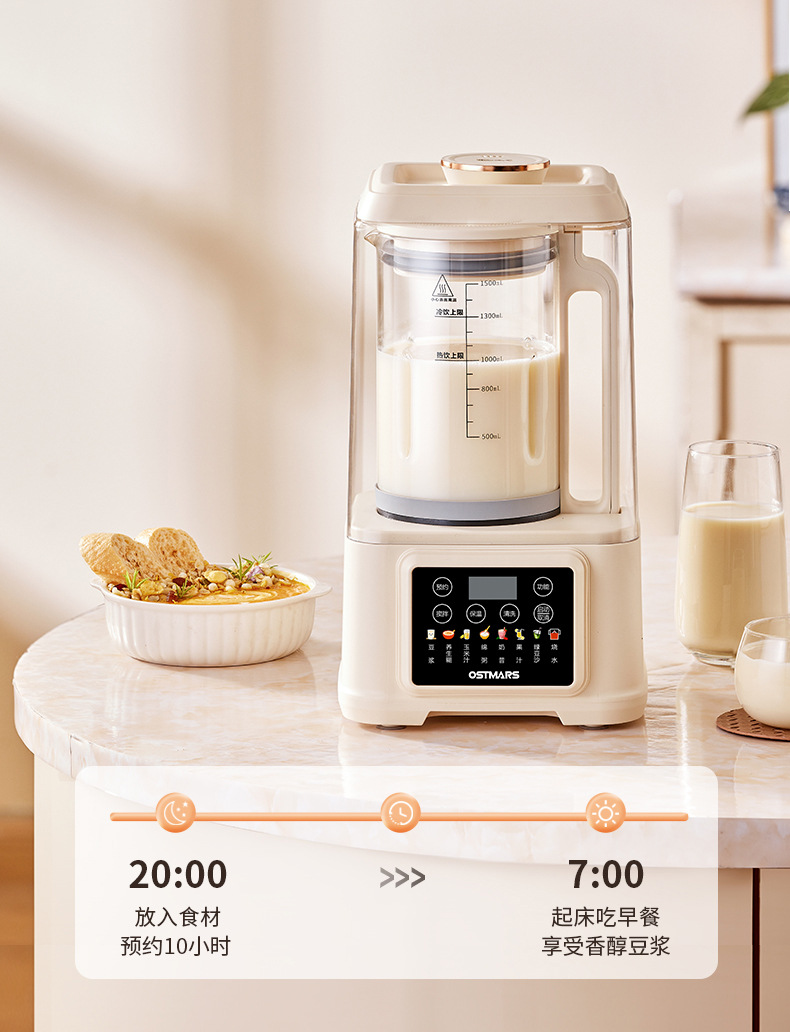 독일 OSTMARS 가벼운 소리 벽 차단기 다기능 가정용 3-4인 조리가 필요 없는 필터가 없는 두유 기계 조리 기계스토어 가기