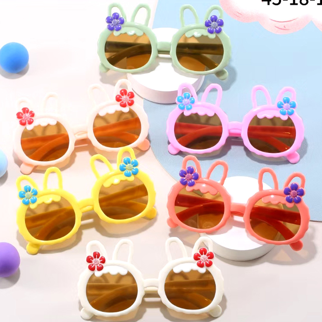 2024 새로운 패션 한국 스타일 어린이 선글라스 귀여운 만화 작은 꽃 토끼 안경 Moe Bao 여행 선글라스스토어 가기