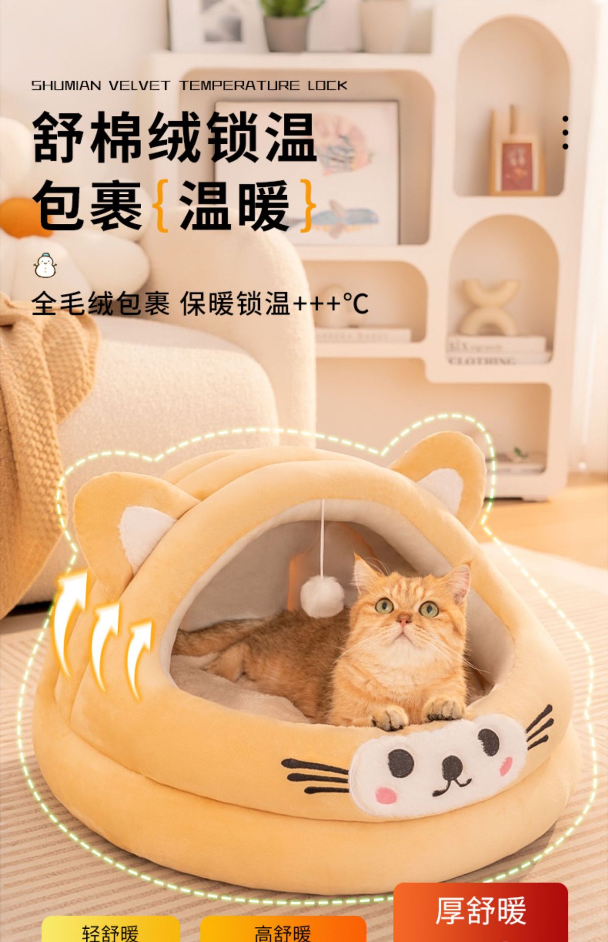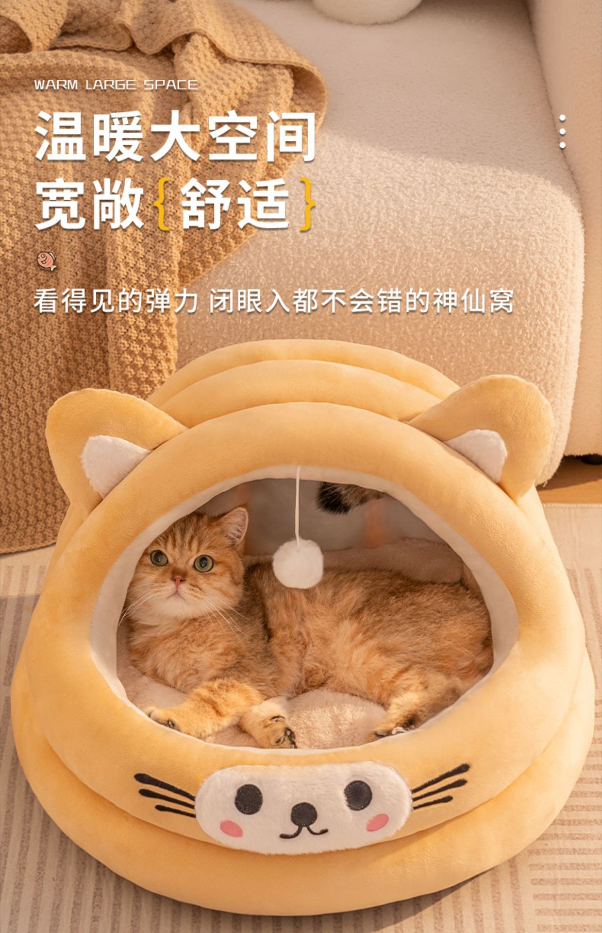 고양이 둥지 겨울 따뜻한 사계절 유니버설 고양이 침대 반 밀폐 안전한 고양이 둥지 겨울 따뜻한 애완 동물 둥지