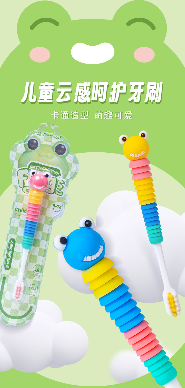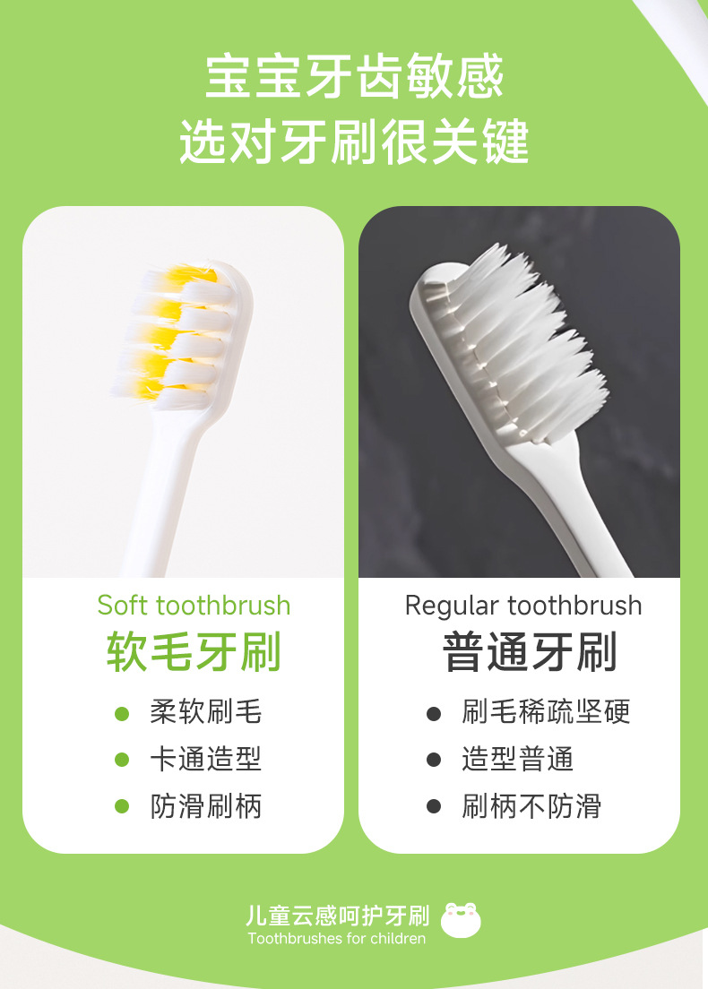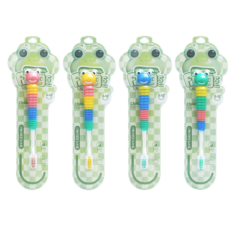 Jian 브랜드 만화 개구리 모양 3-12 세 아기 부드러운 강모 칫솔 어린이 칫솔 부드러운 강모 슈퍼마켓 도매