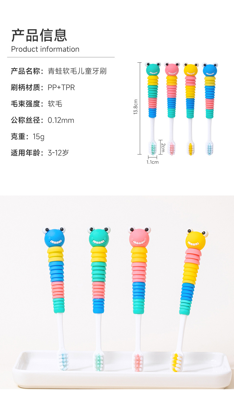 Jian 브랜드 만화 개구리 모양 3-12 세 아기 부드러운 강모 칫솔 어린이 칫솔 부드러운 강모 슈퍼마켓 도매스토어 가기