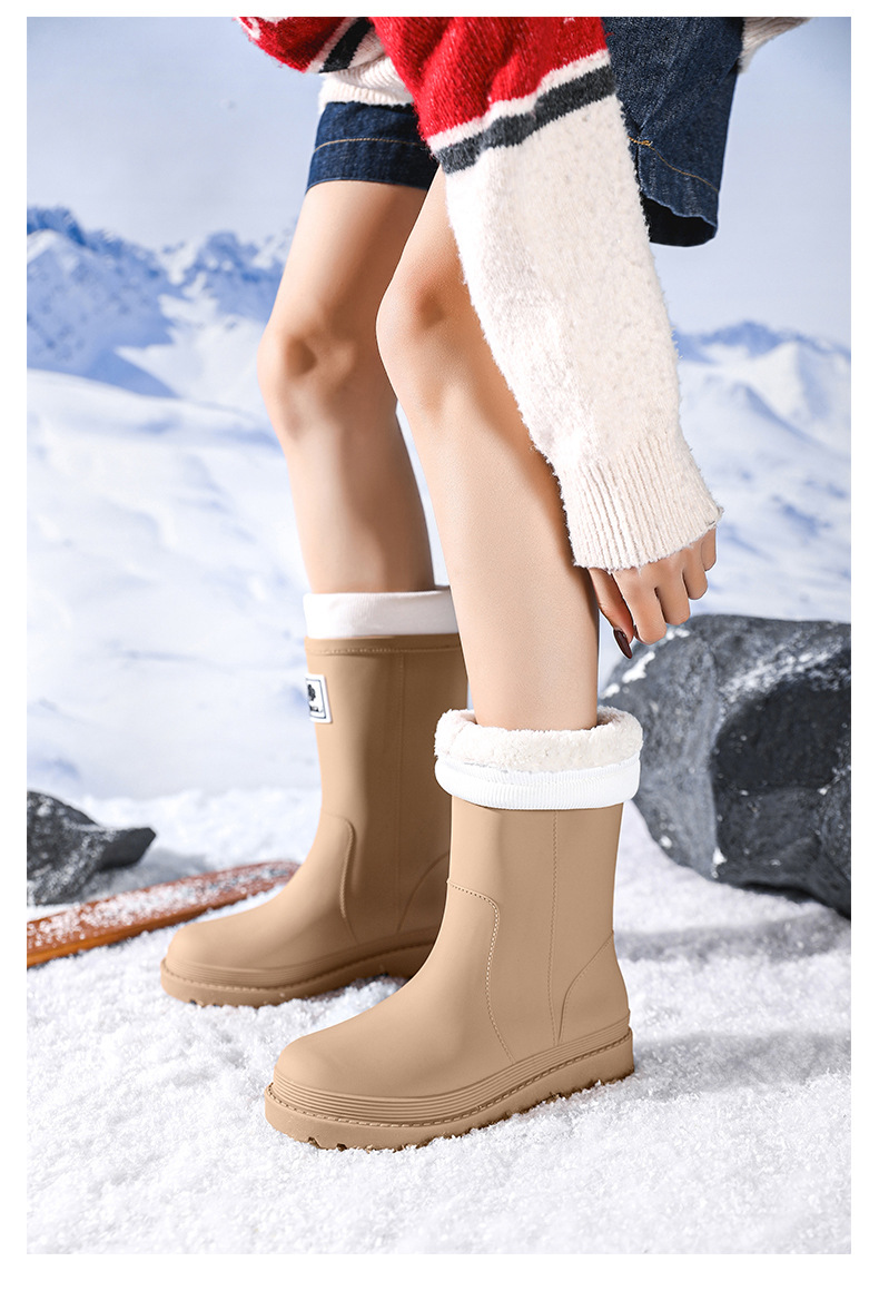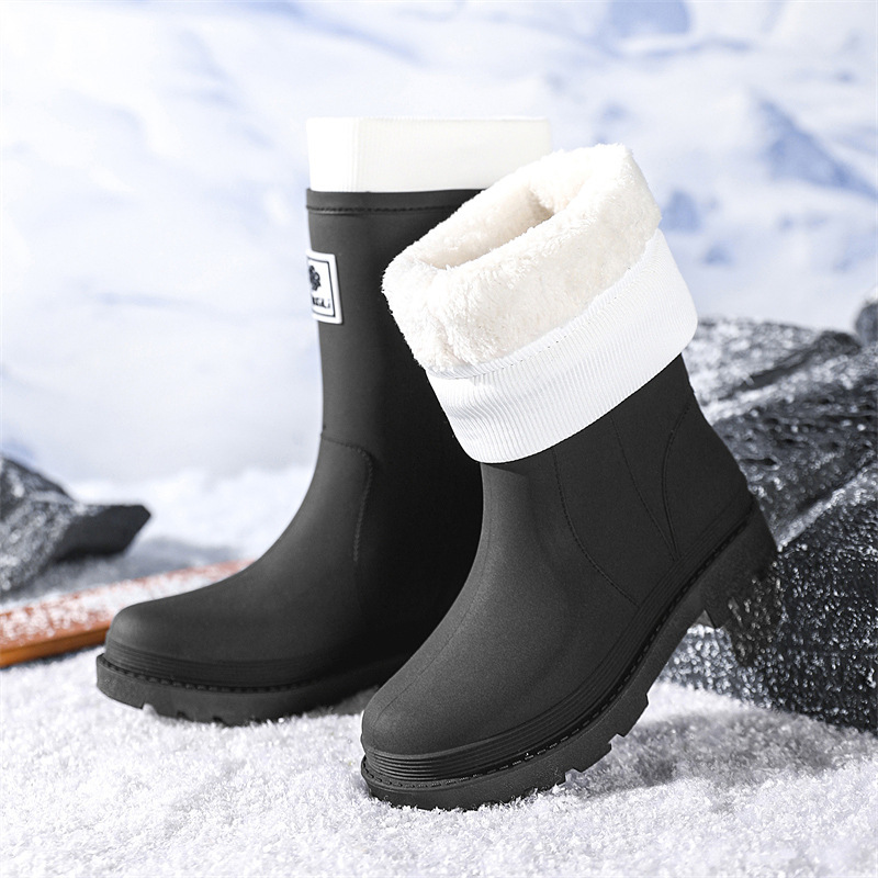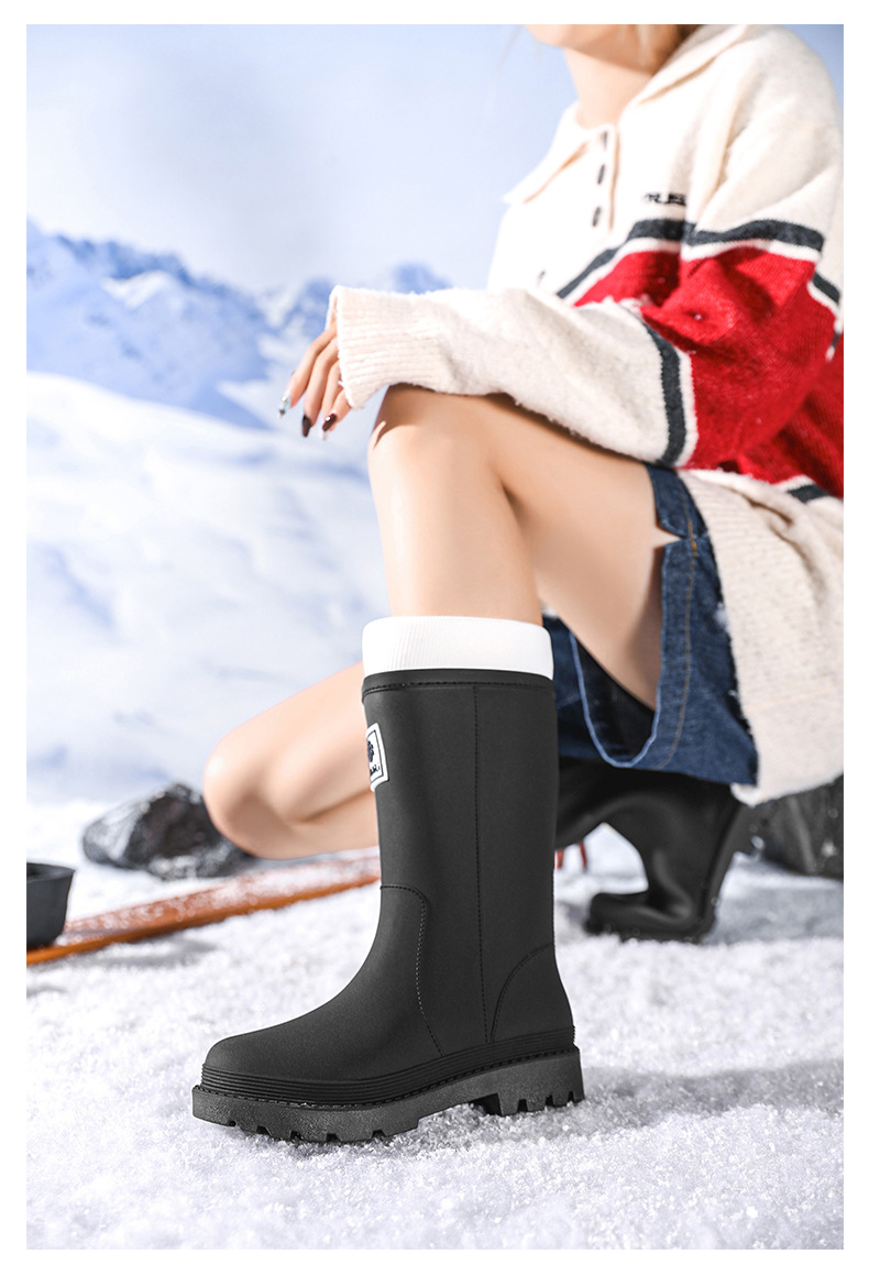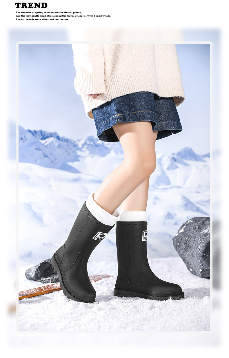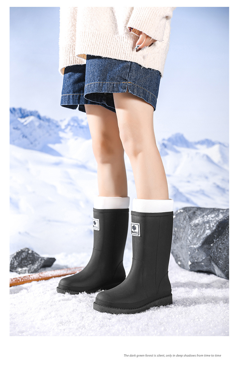 국경을 넘는 일본과 한국 신형 중통 장화 여성용 겨울 통합 기모 따뜻한 장화 패션 워터 슈즈 미끄럼 방지 고무 신발