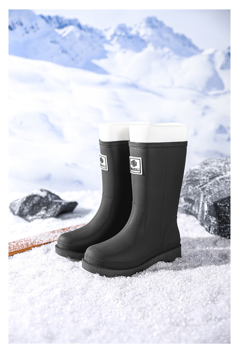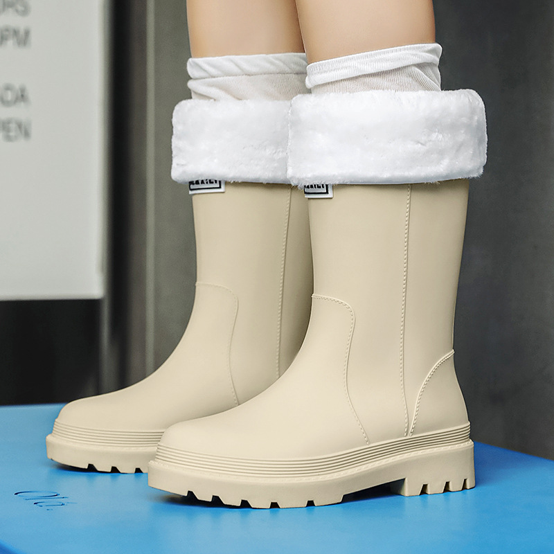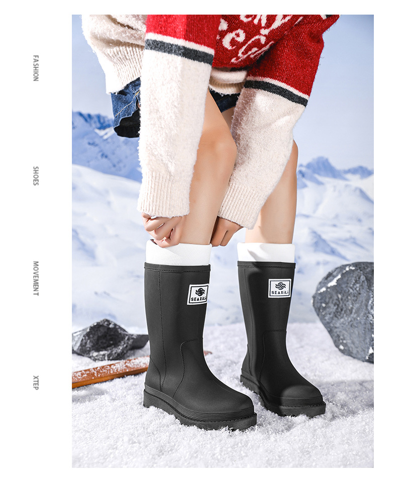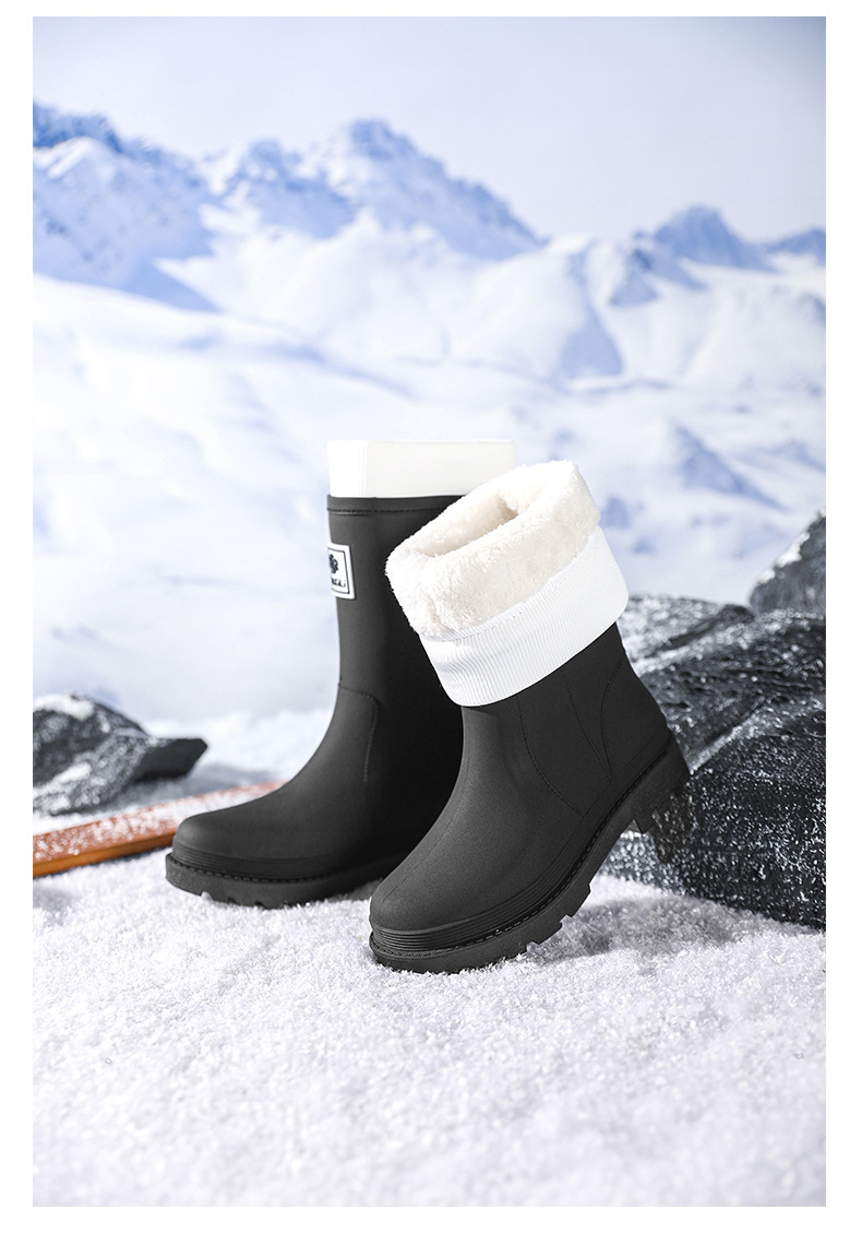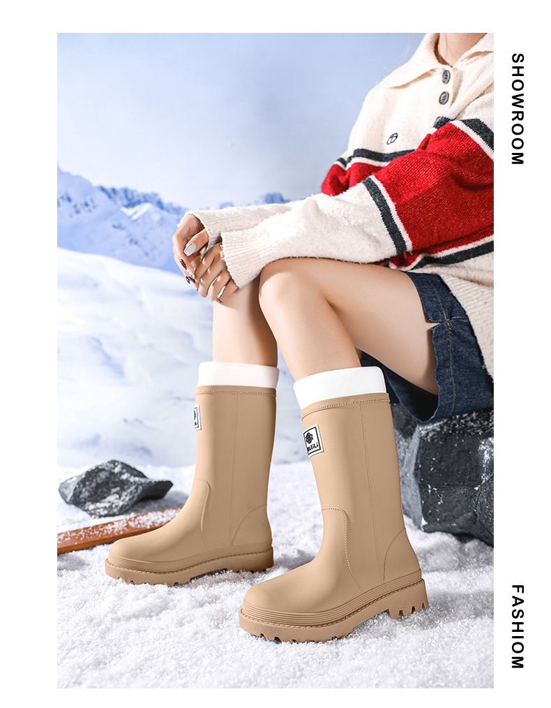 국경을 넘는 일본과 한국 신형 중통 장화 여성용 겨울 통합 기모 따뜻한 장화 패션 워터 슈즈 미끄럼 방지 고무 신발