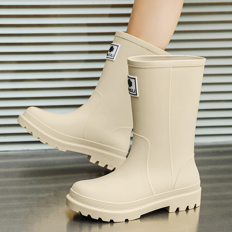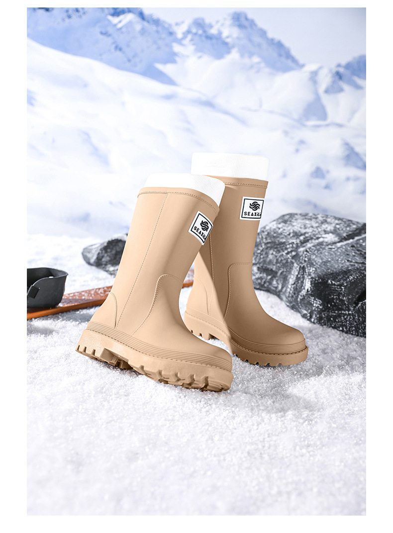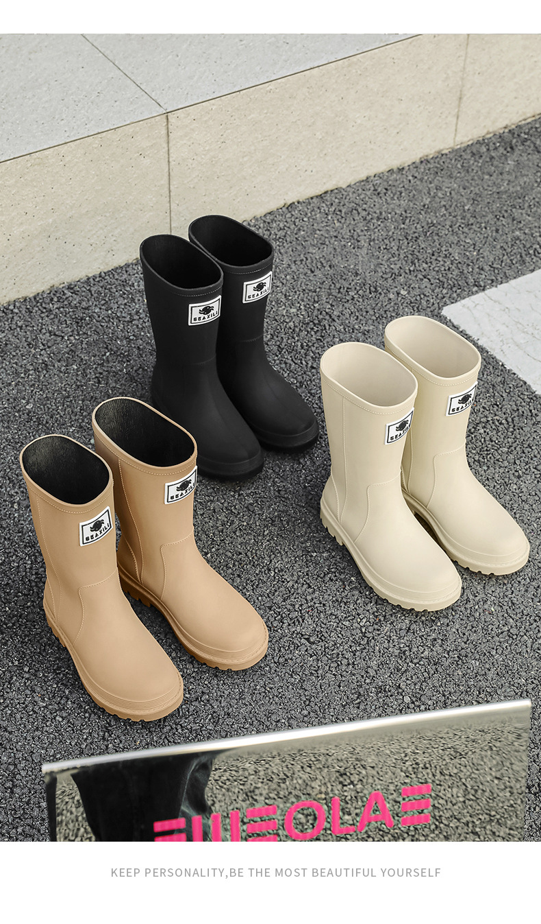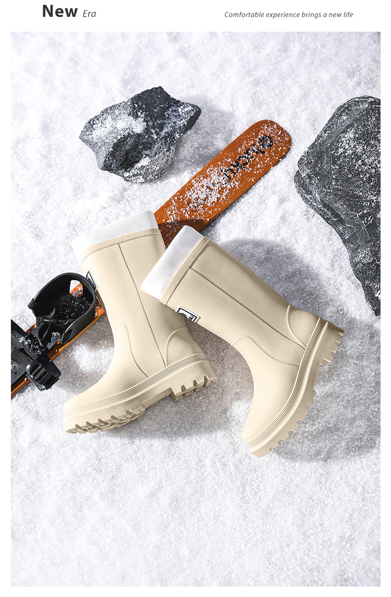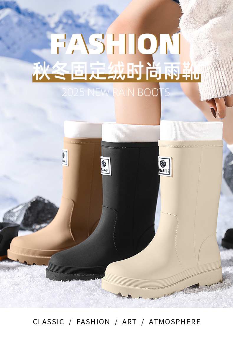 국경을 넘는 일본과 한국 신형 중통 장화 여성용 겨울 통합 기모 따뜻한 장화 패션 워터 슈즈 미끄럼 방지 고무 신발