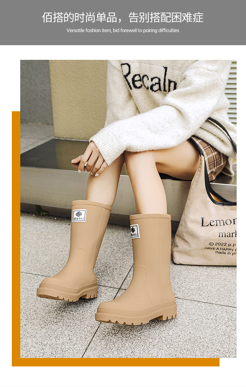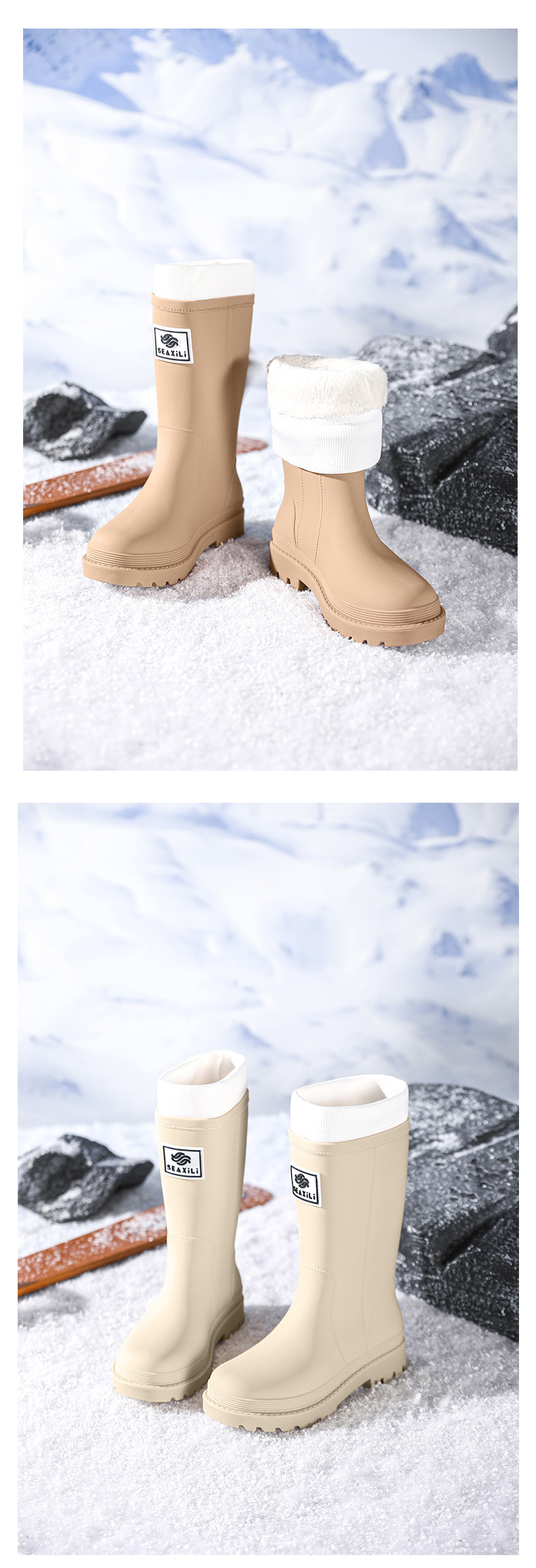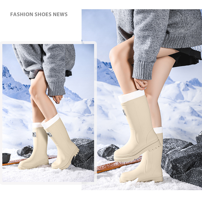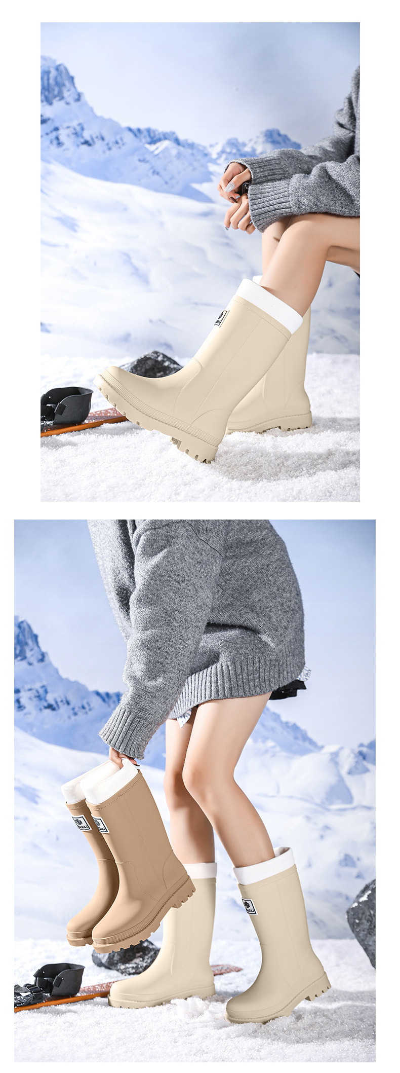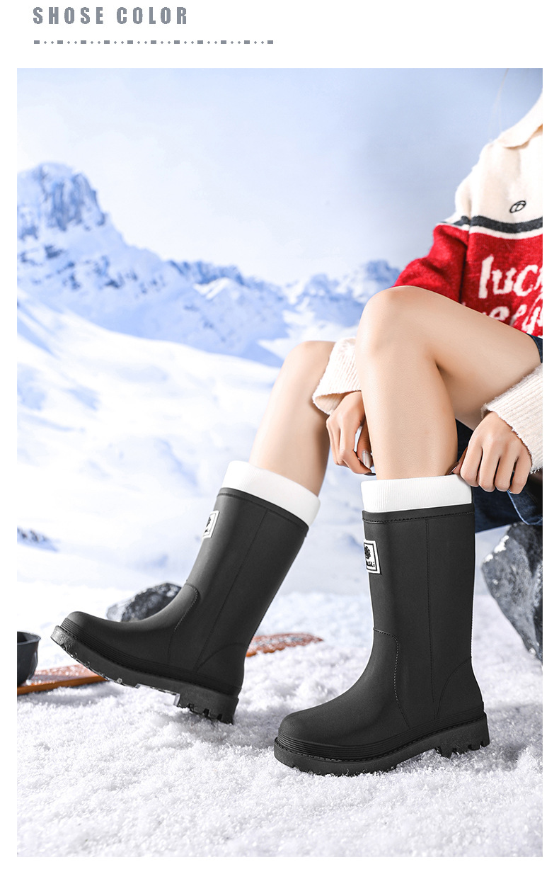 국경을 넘는 일본과 한국 신형 중통 장화 여성용 겨울 통합 기모 따뜻한 장화 패션 워터 슈즈 미끄럼 방지 고무 신발스토어 가기