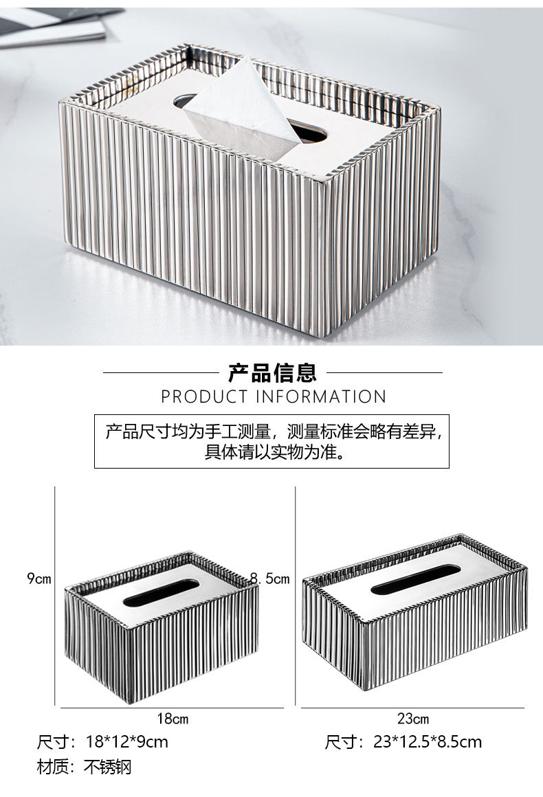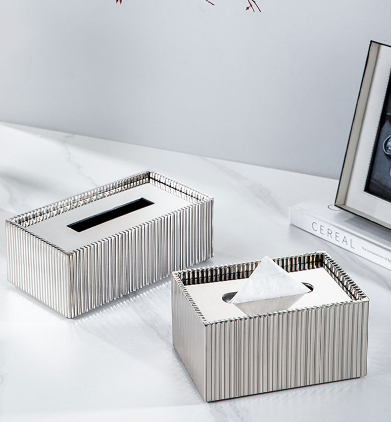 현대 빛 럭셔리 스테인레스 스틸 티슈 박스 하이 엔드 모델 룸 호텔 거실 홈 레스토랑 창조적 인 종이 상자 장식품