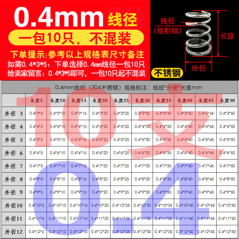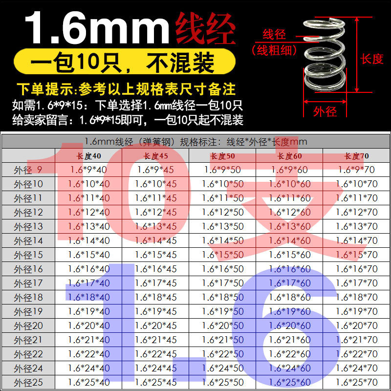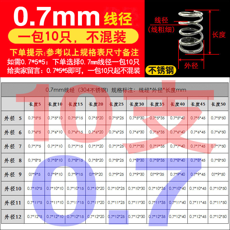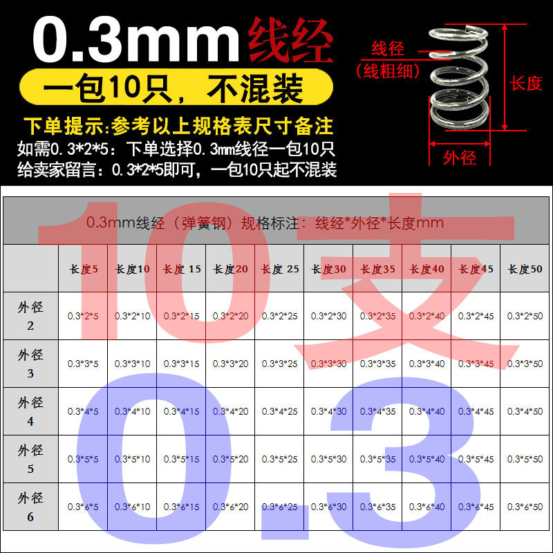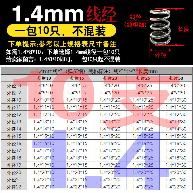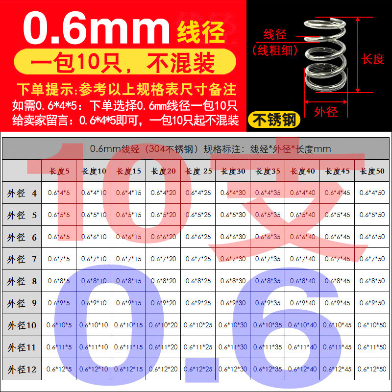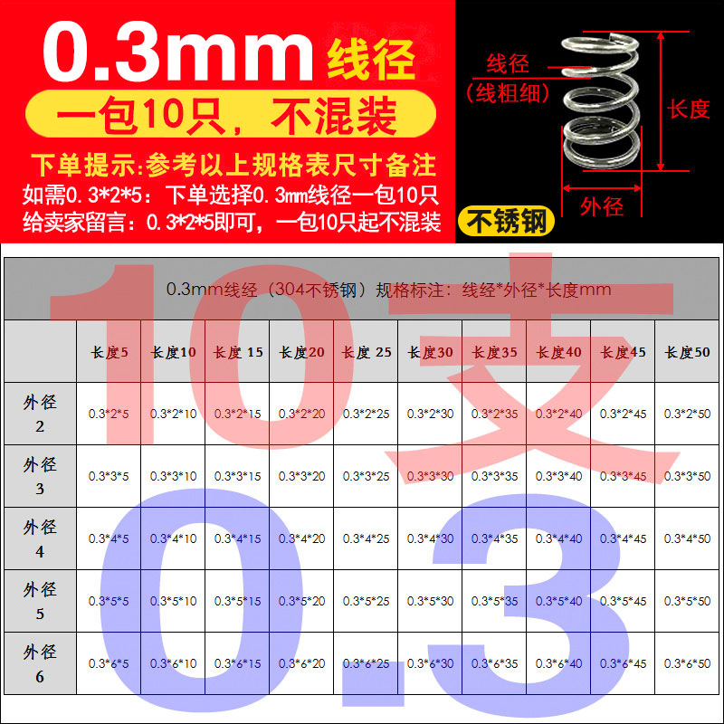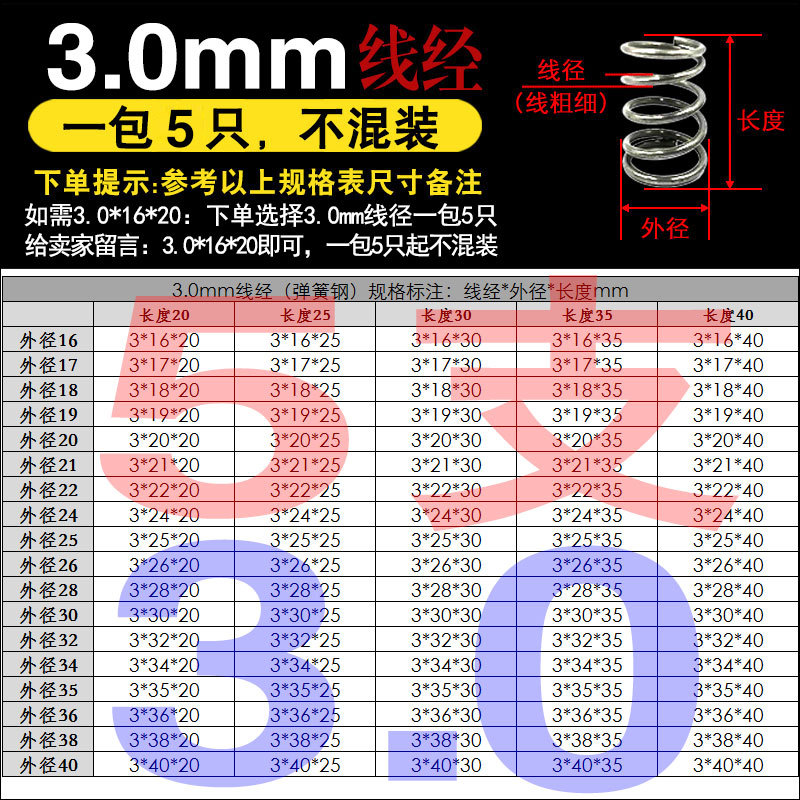 • 팁 3: 사진 촬영(와이어 직경)에 주의하십시오(와이어 직경 * 외경 * 길이)