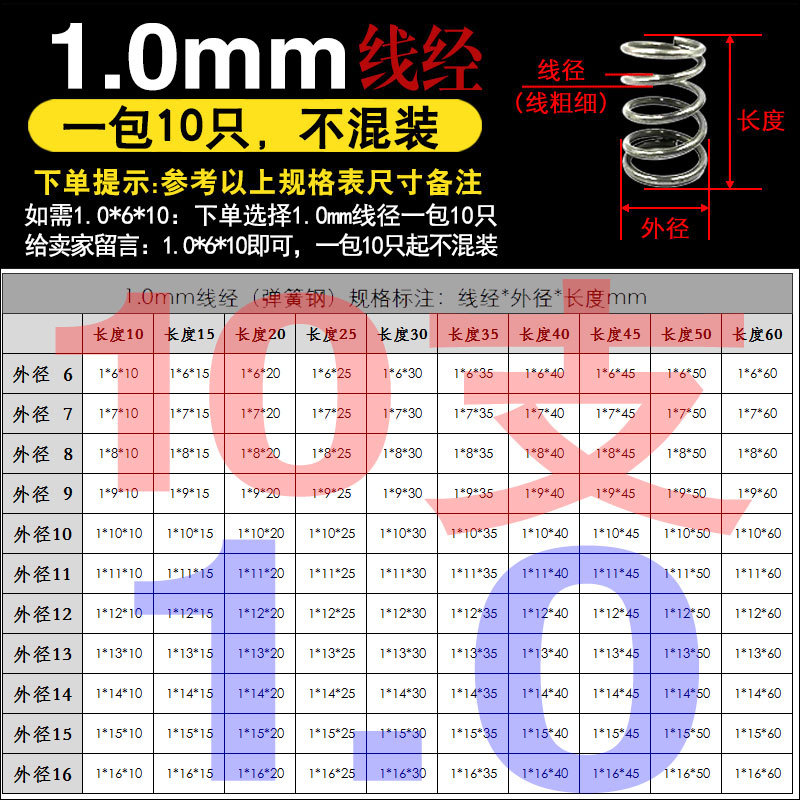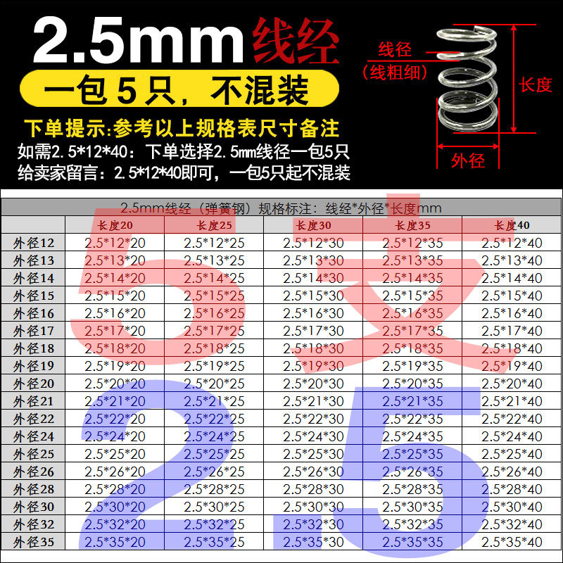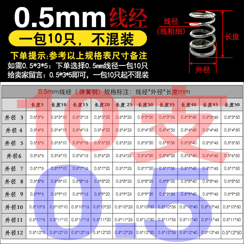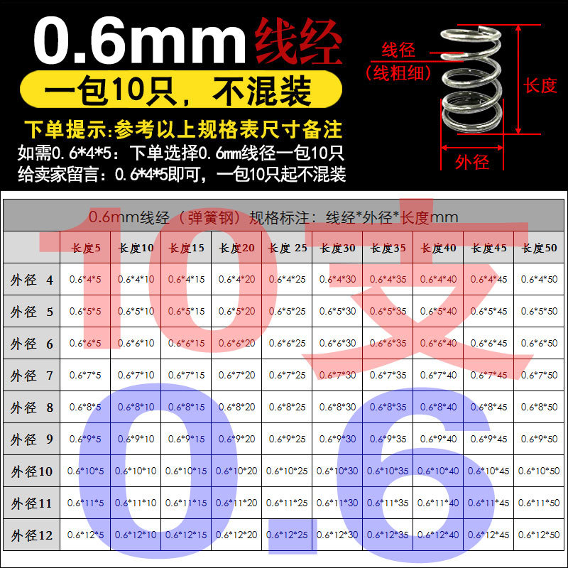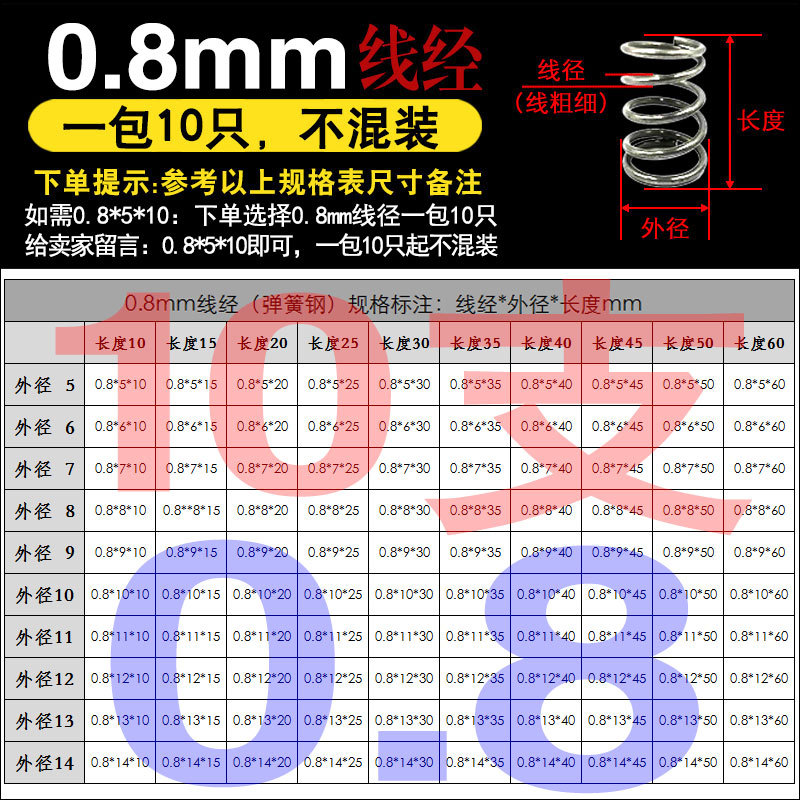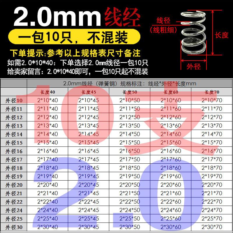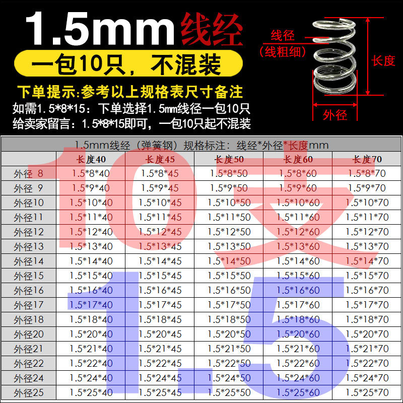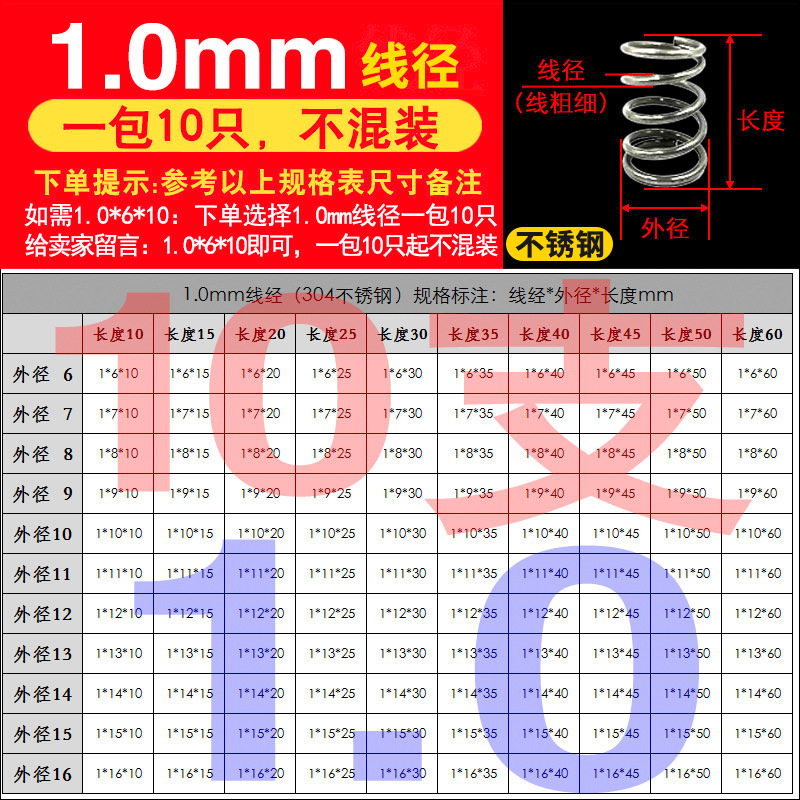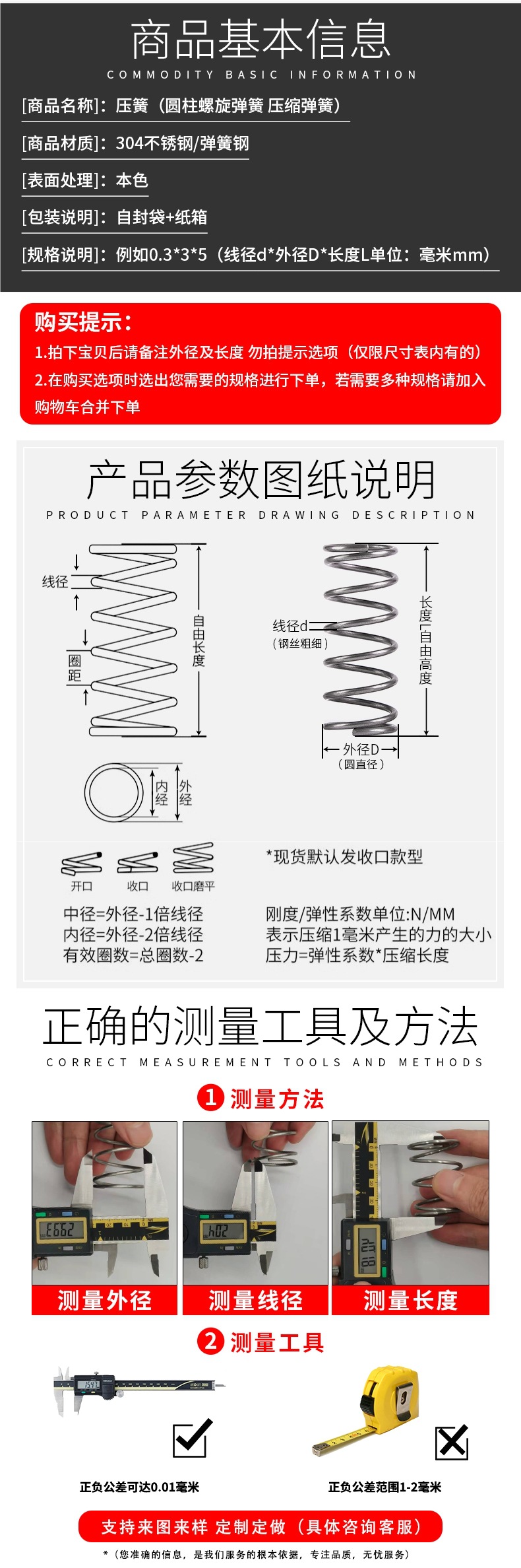 • 팁 3: 사진 촬영(와이어 직경)에 주의하십시오(와이어 직경 * 외경 * 길이)