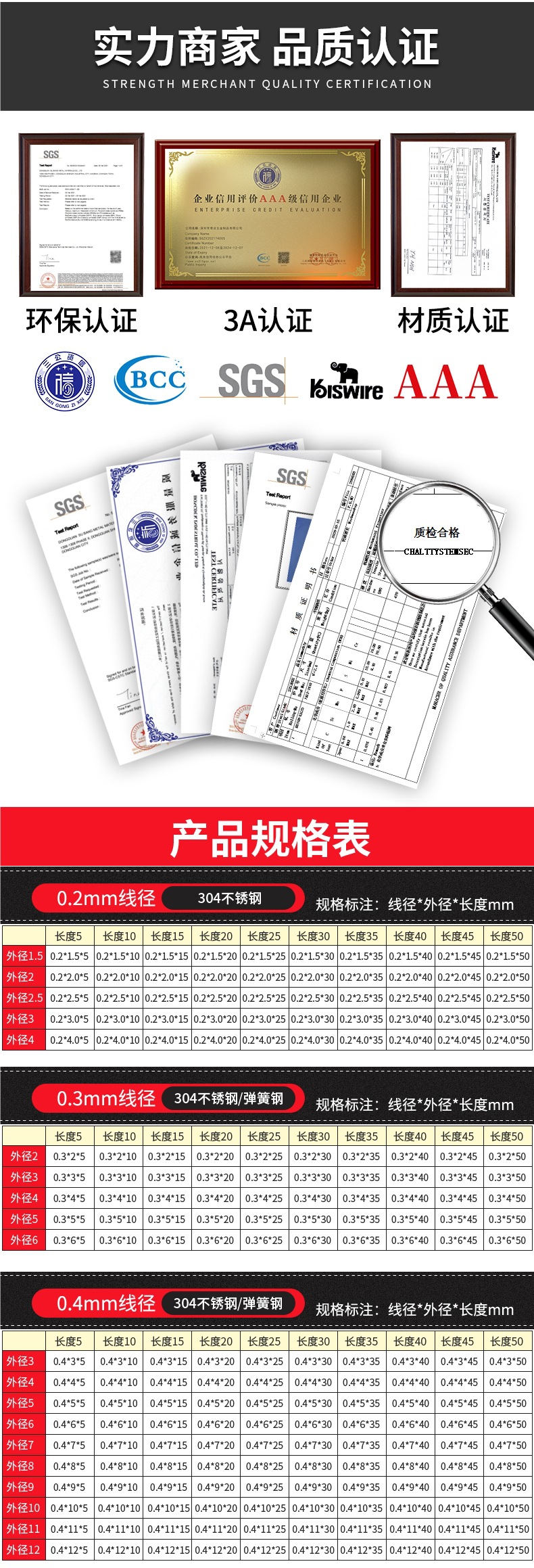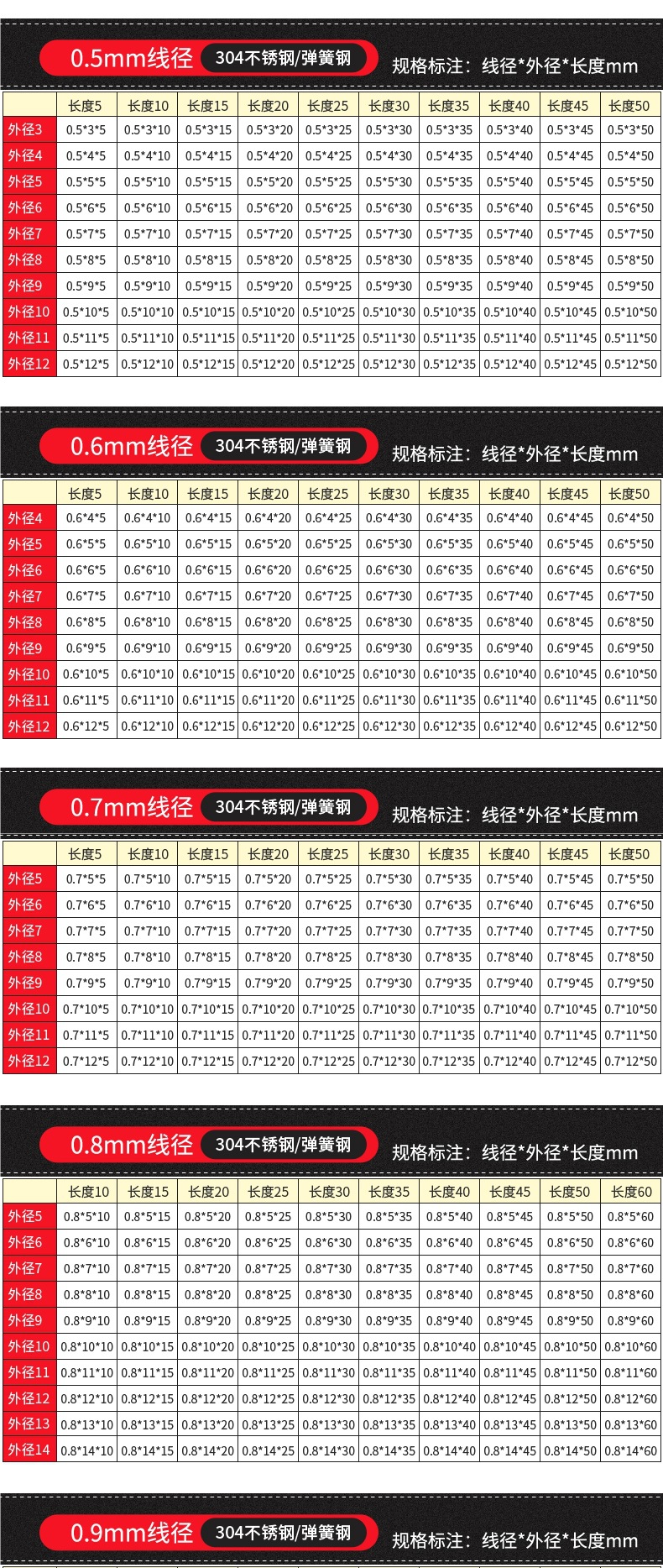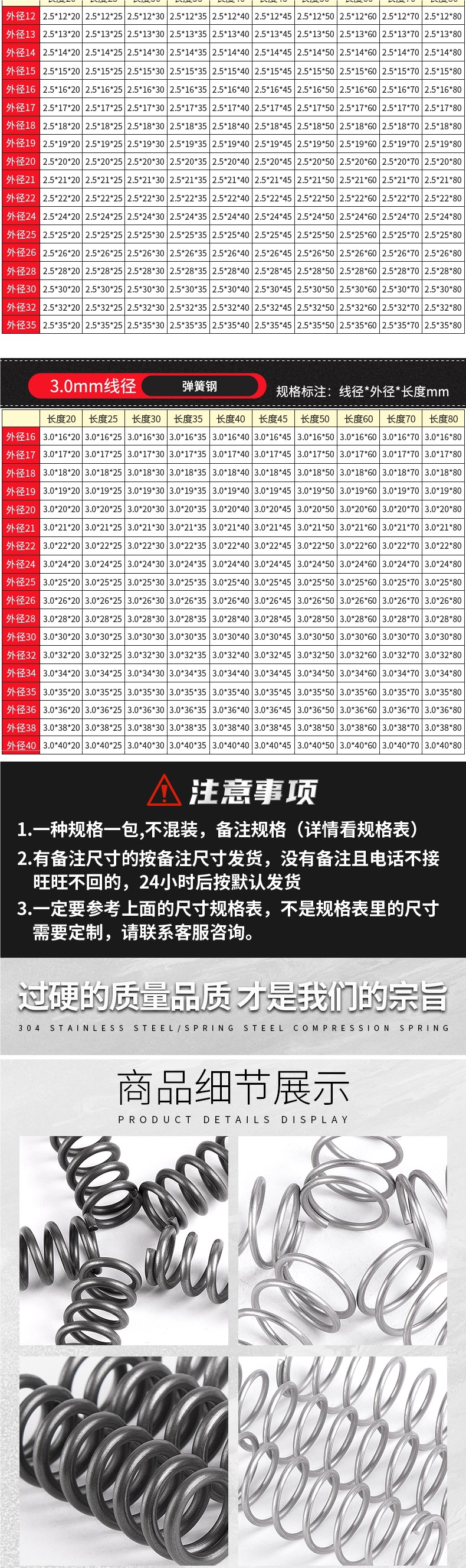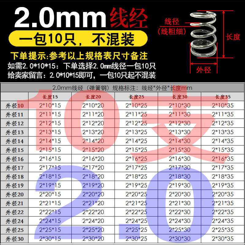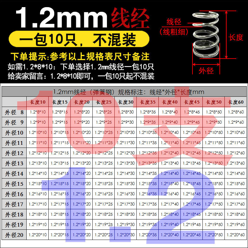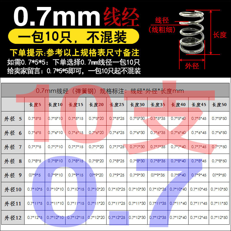 • 팁 3: 사진 촬영(와이어 직경)에 주의하십시오(와이어 직경 * 외경 * 길이)