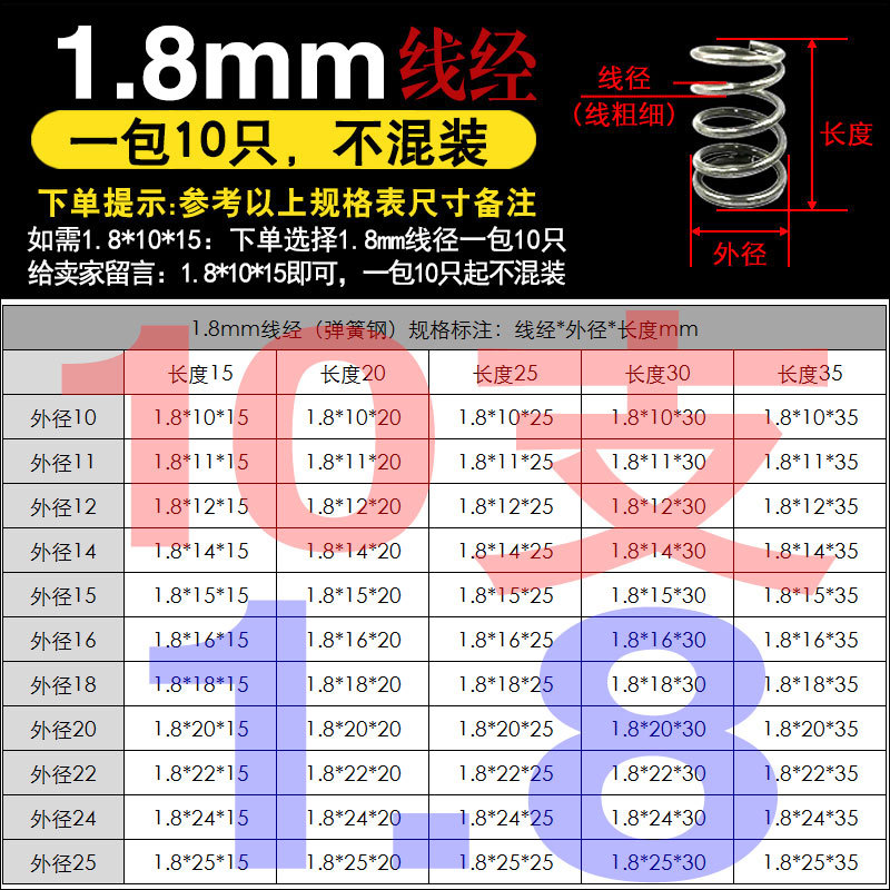 • 와이어 직경 1.8mm(10개) 스프링 강
