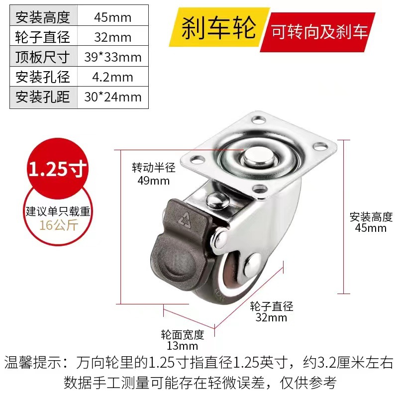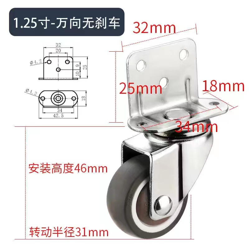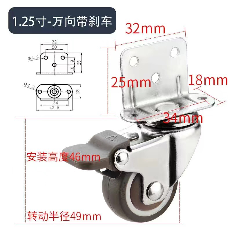 • 브레이크가 장착된 1.25inch L자형 범용 휠 [1팩]