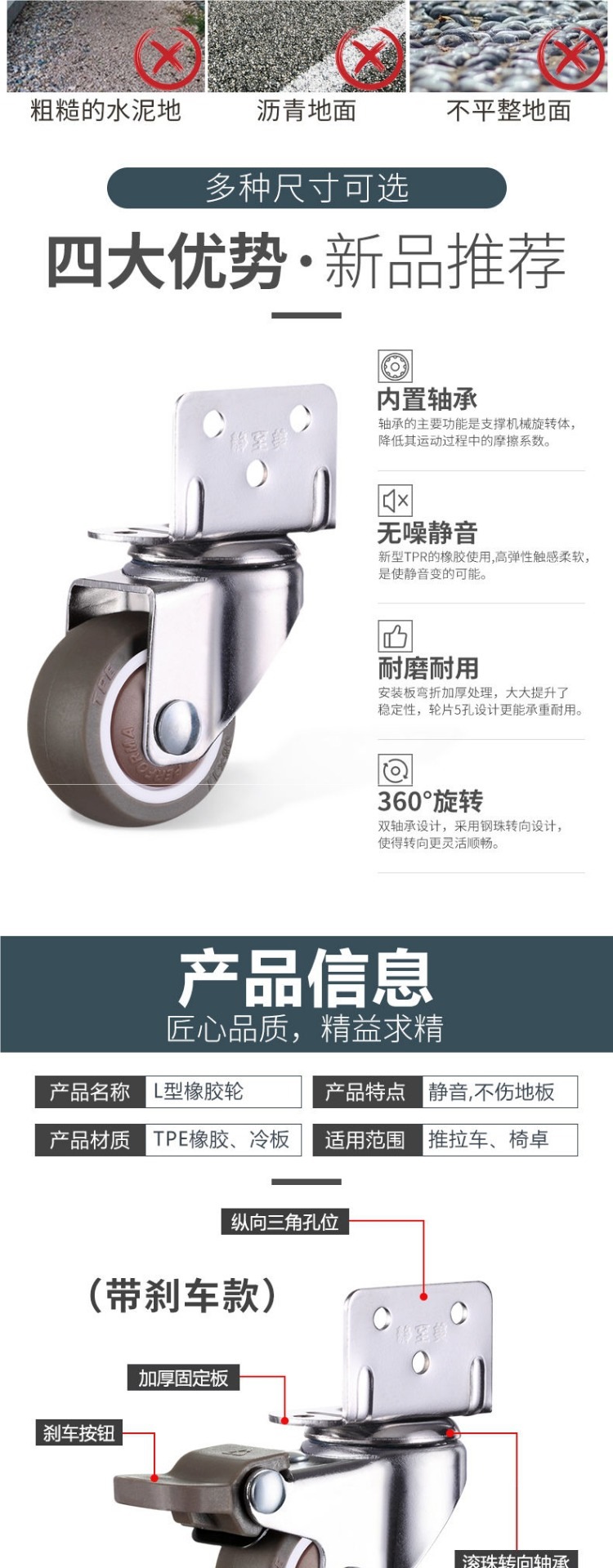 • 브레이크가 장착된 2inch L자형 범용 휠 [1팩]