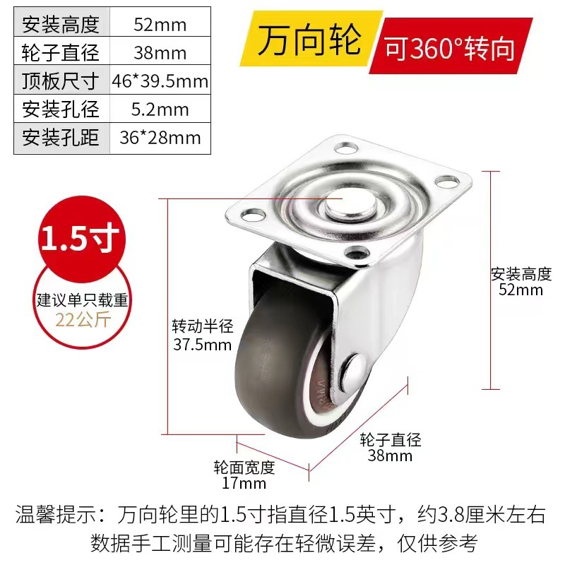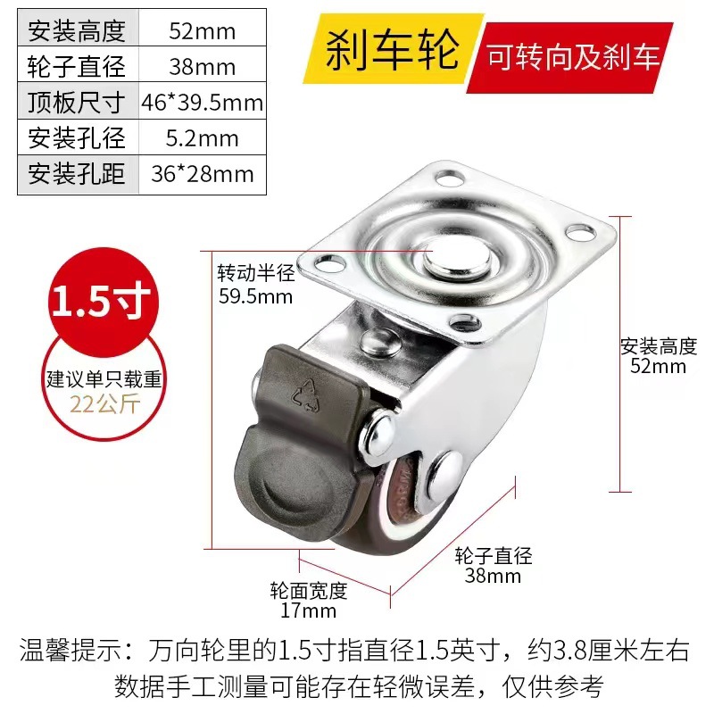• 브레이크가 장착된 1.5inch L자형 범용 휠 [1팩]