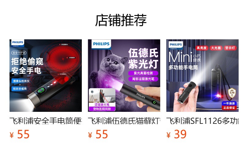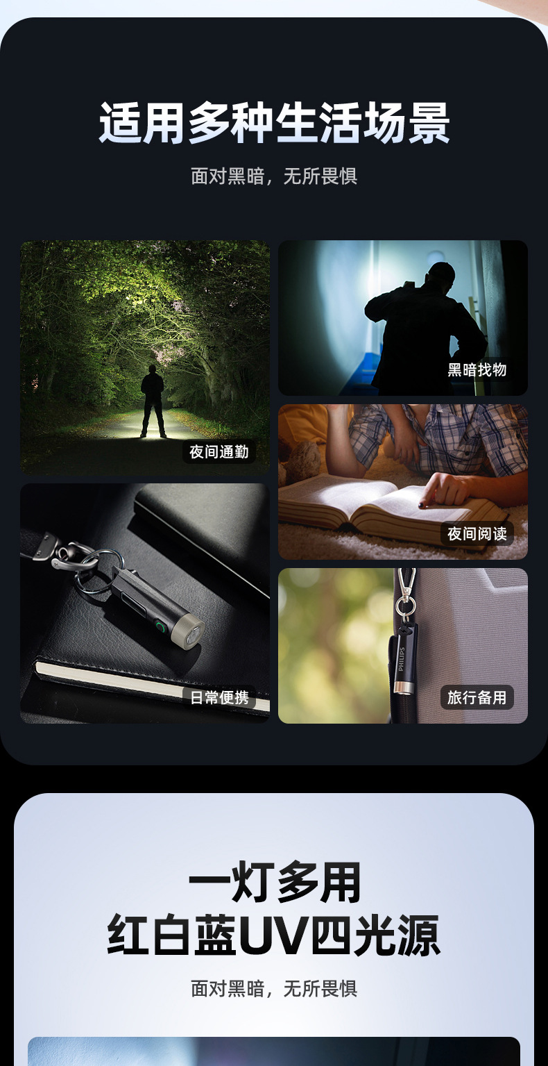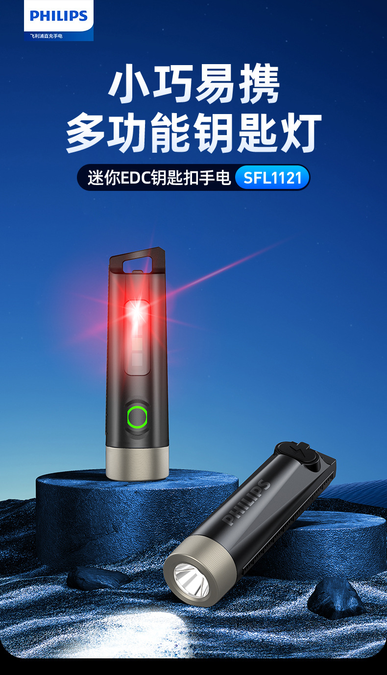 필립스 LED 강한 빛 미니 손전등 야외 휴대용 걸이형 키체인 보라색 빛 손전등 SFL1121스토어 가기