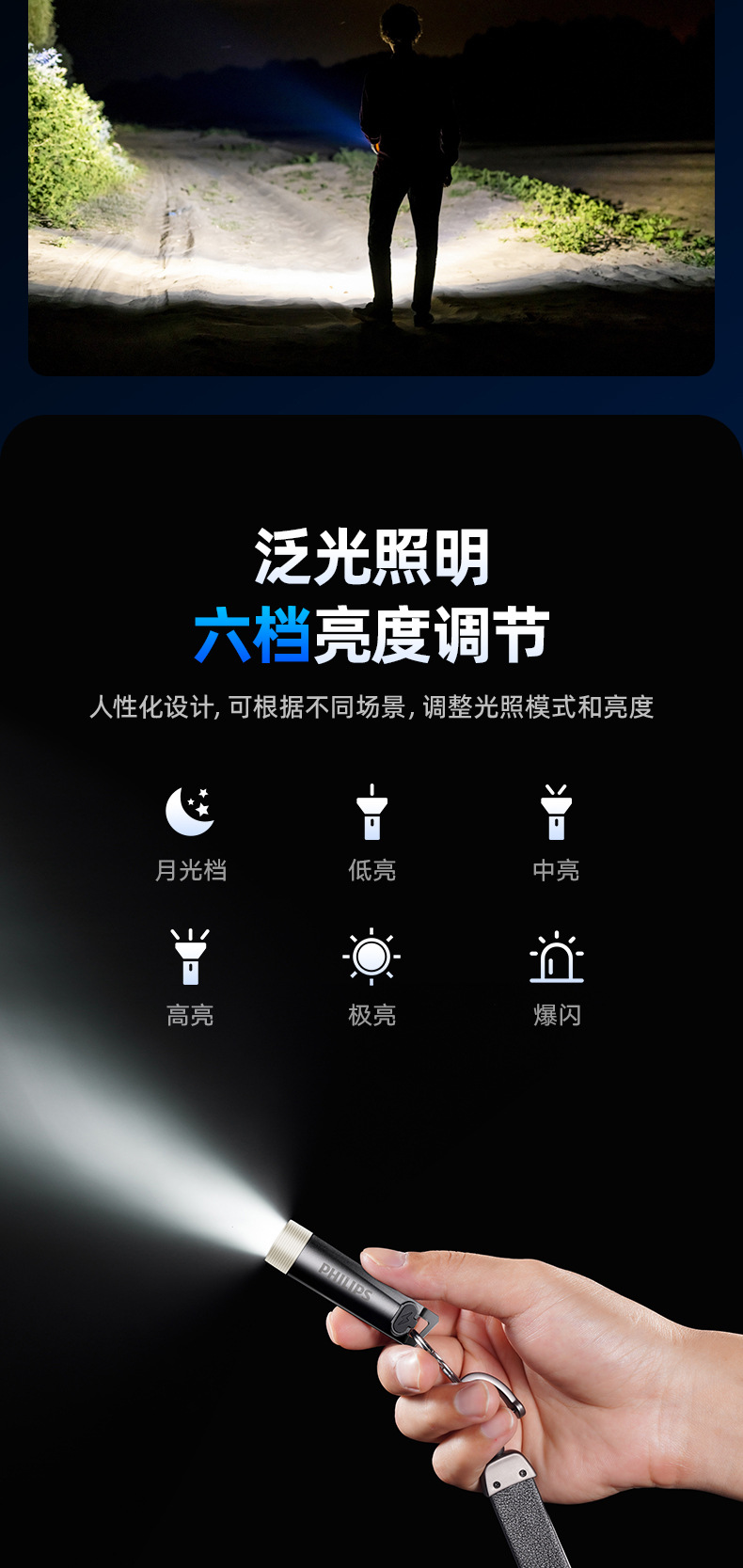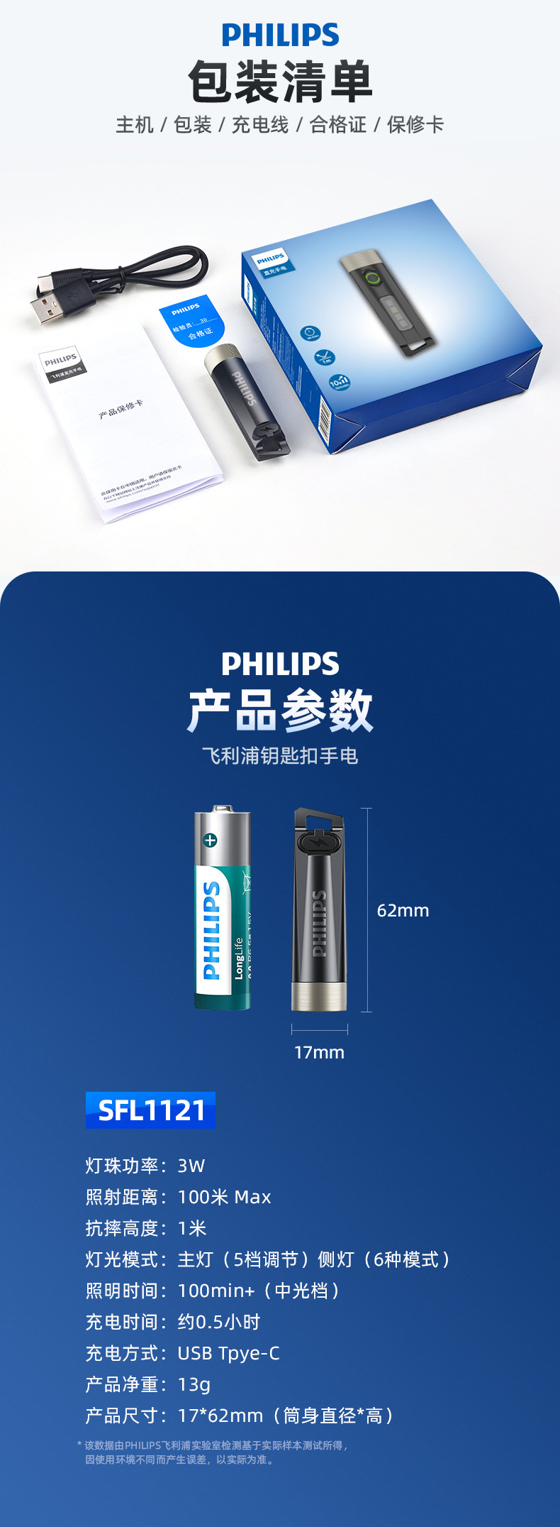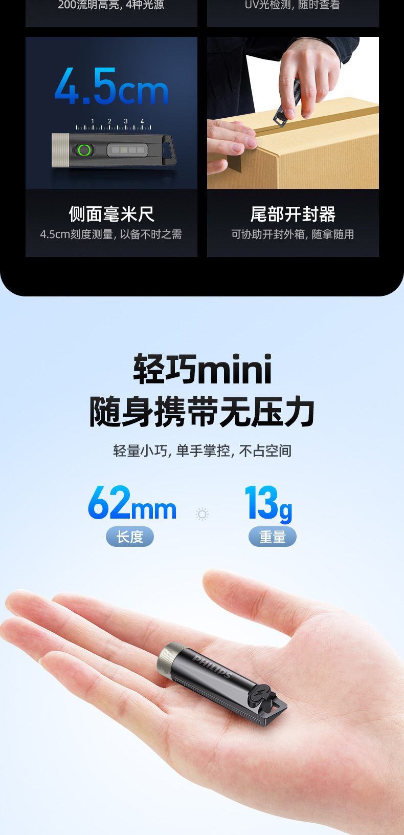 필립스 LED 강한 빛 미니 손전등 야외 휴대용 걸이형 키체인 보라색 빛 손전등 SFL1121스토어 가기