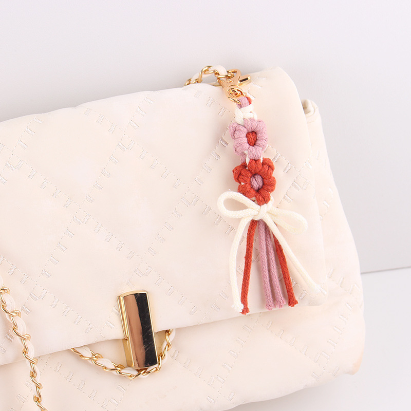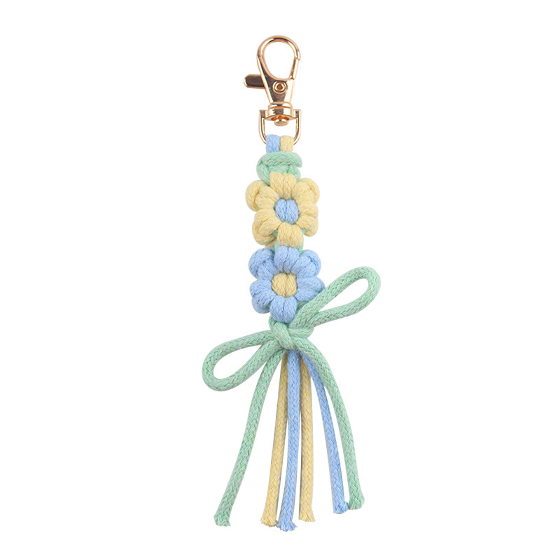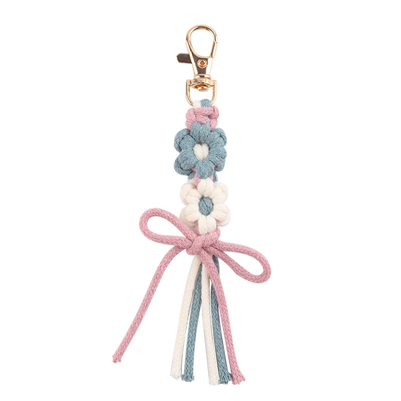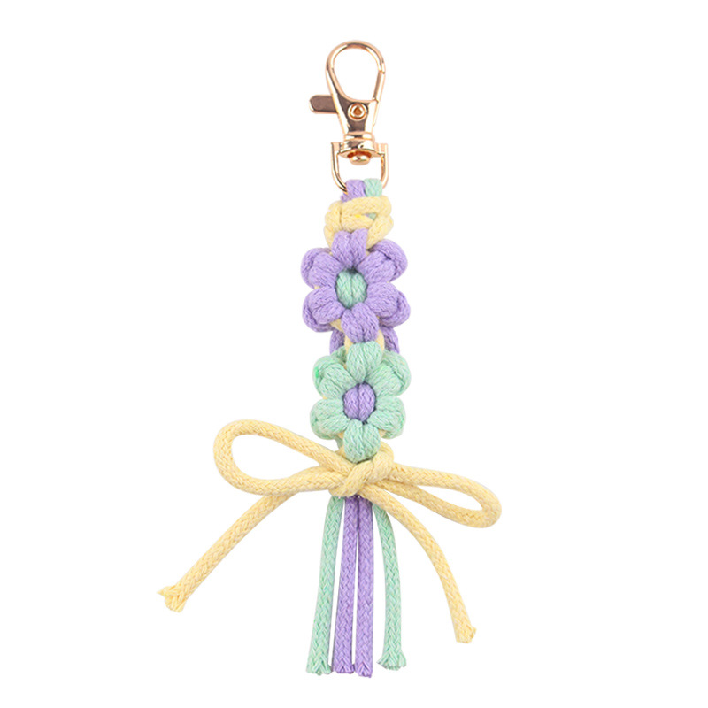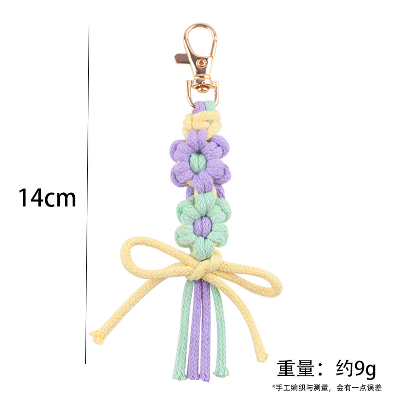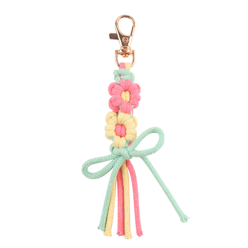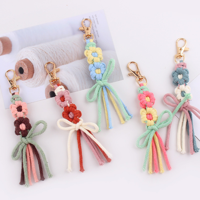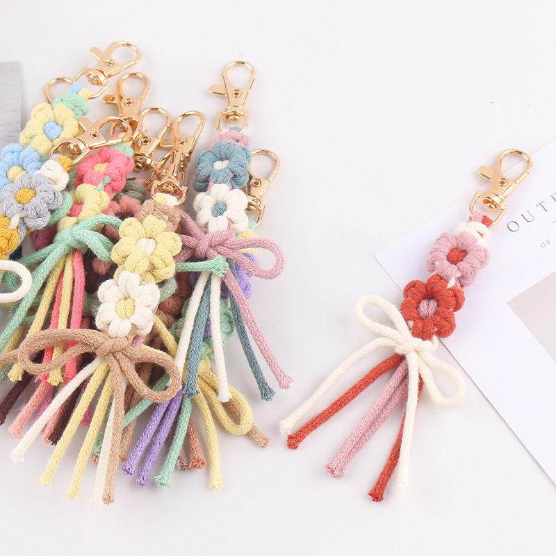 새로운 순수한 손으로 짠 만화 꽃 키 체인 펜던트 창조적 인 컬러 코튼 로프 백 펜던트 쥬얼리 액세서리