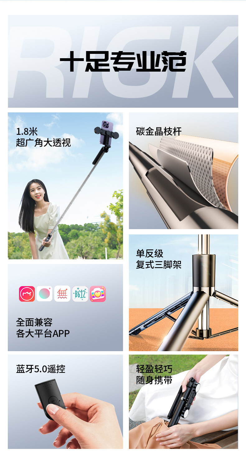 R16K 국경 폭발 셀카 스틱 야외 셀카 아티팩트 텔레스코픽 스틱 휴대용 블루투스 뷰티 라이트 삼각대