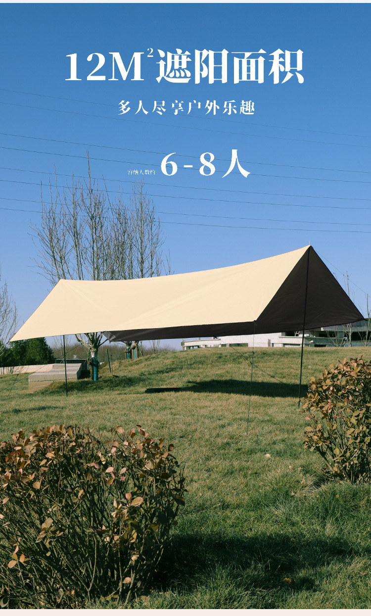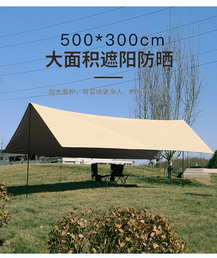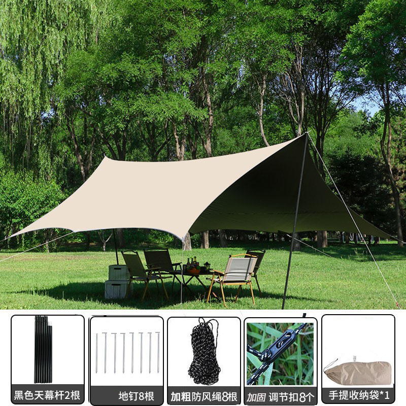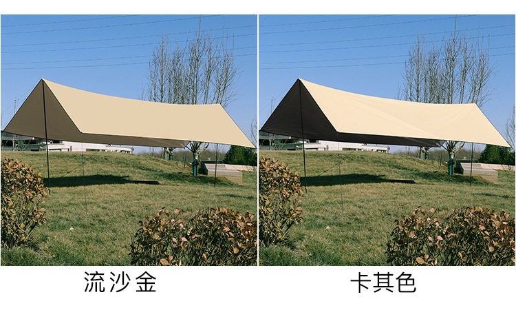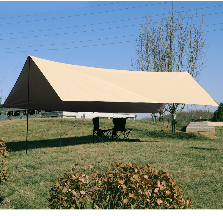 야외 캠핑 텐트 방풍 및 자외선 차단 카키색 비막이 텐트 다인용 사각형 캐노피 폭우 방지 등급