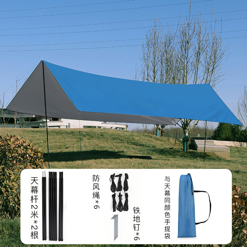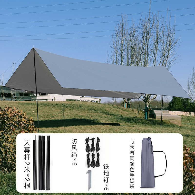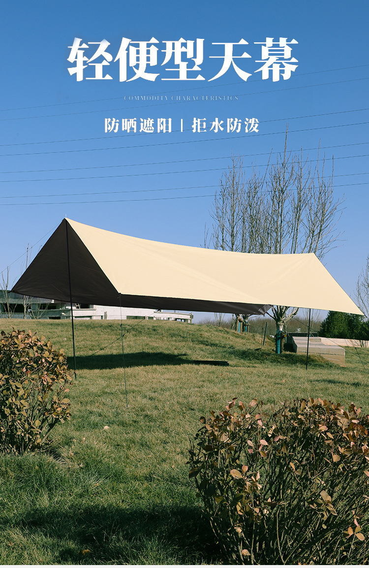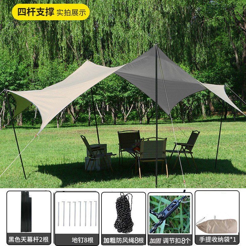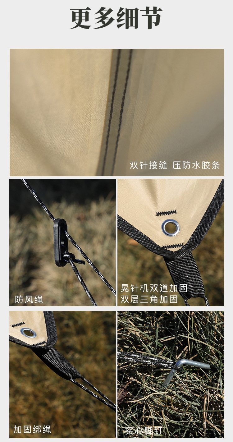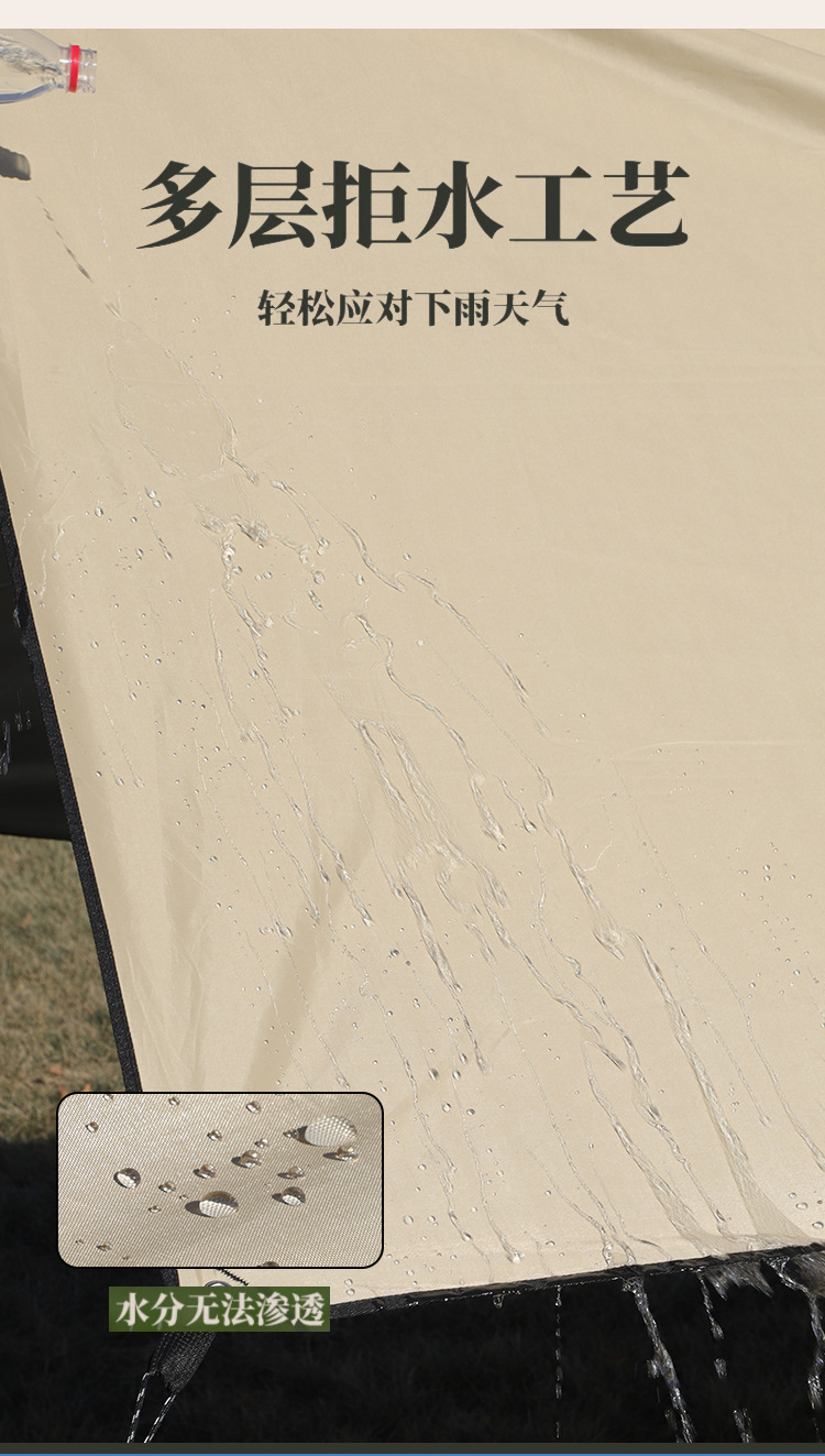 야외 캠핑 텐트 방풍 및 자외선 차단 카키색 비막이 텐트 다인용 사각형 캐노피 폭우 방지 등급스토어 가기