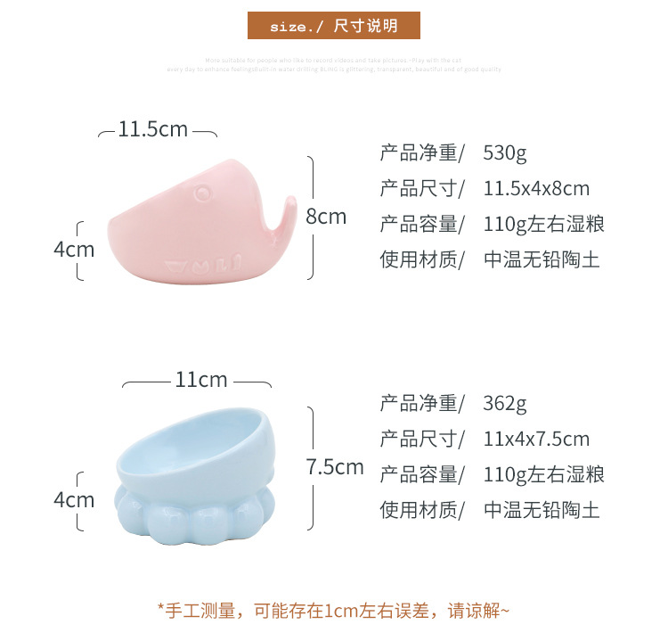 고양이 그릇 개 그릇 귀여운 마시는 그릇 세라믹 그릇 스낵 그릇 안티 노크 젖은 음식 그릇 보호 자궁 경부 애완 동물 용품