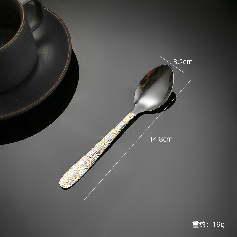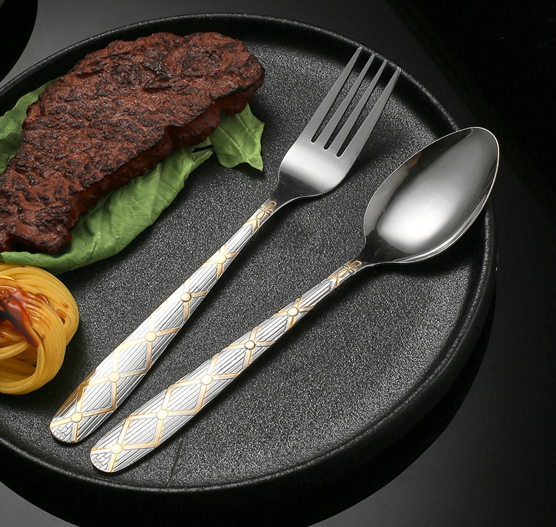스테인레스 스틸 스푼과 포크, 고급 메쉬 수성 도금 금도금 가정용 수프 스푼, 레스토랑 식기, 구내식당 도시락 스푼스토어 가기