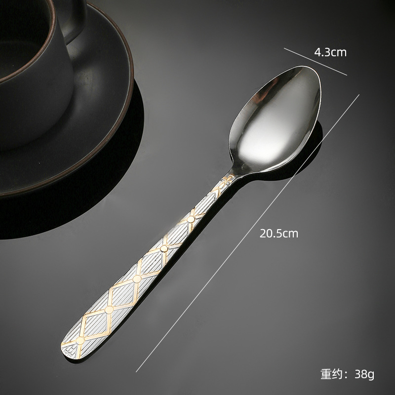 스테인레스 스틸 스푼과 포크, 고급 메쉬 수성 도금 금도금 가정용 수프 스푼, 레스토랑 식기, 구내식당 도시락 스푼