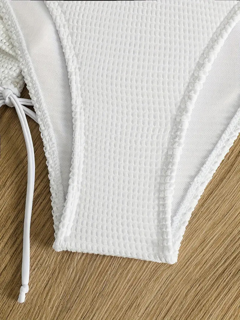 2024 새로운 비키니 국경 유럽 및 미국 무역 솔리드 컬러 레이스 업 하이 허리 섹시 비키니 분할 수영복