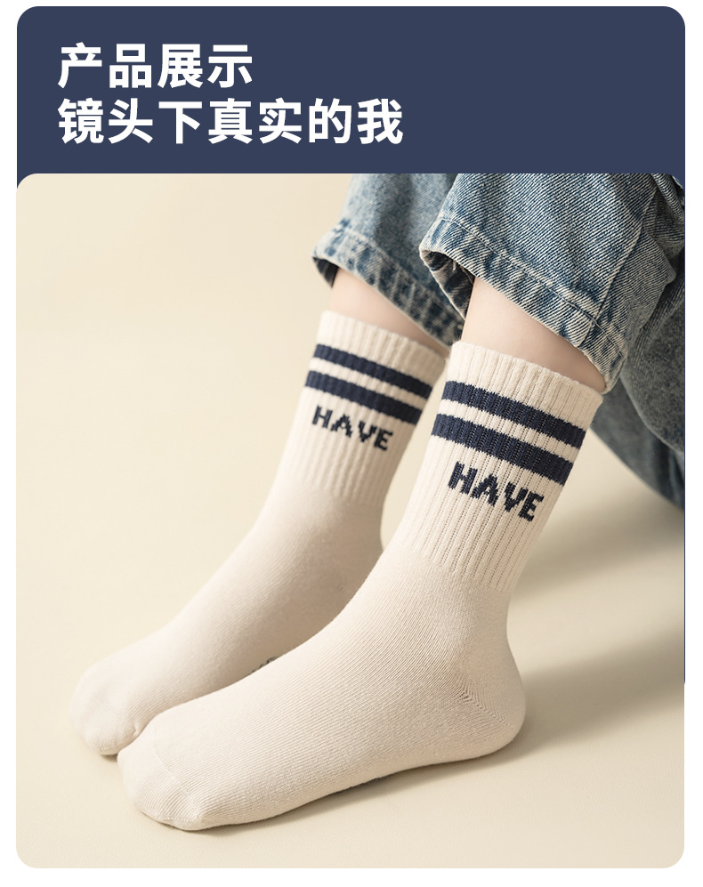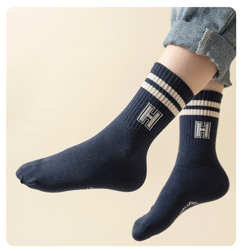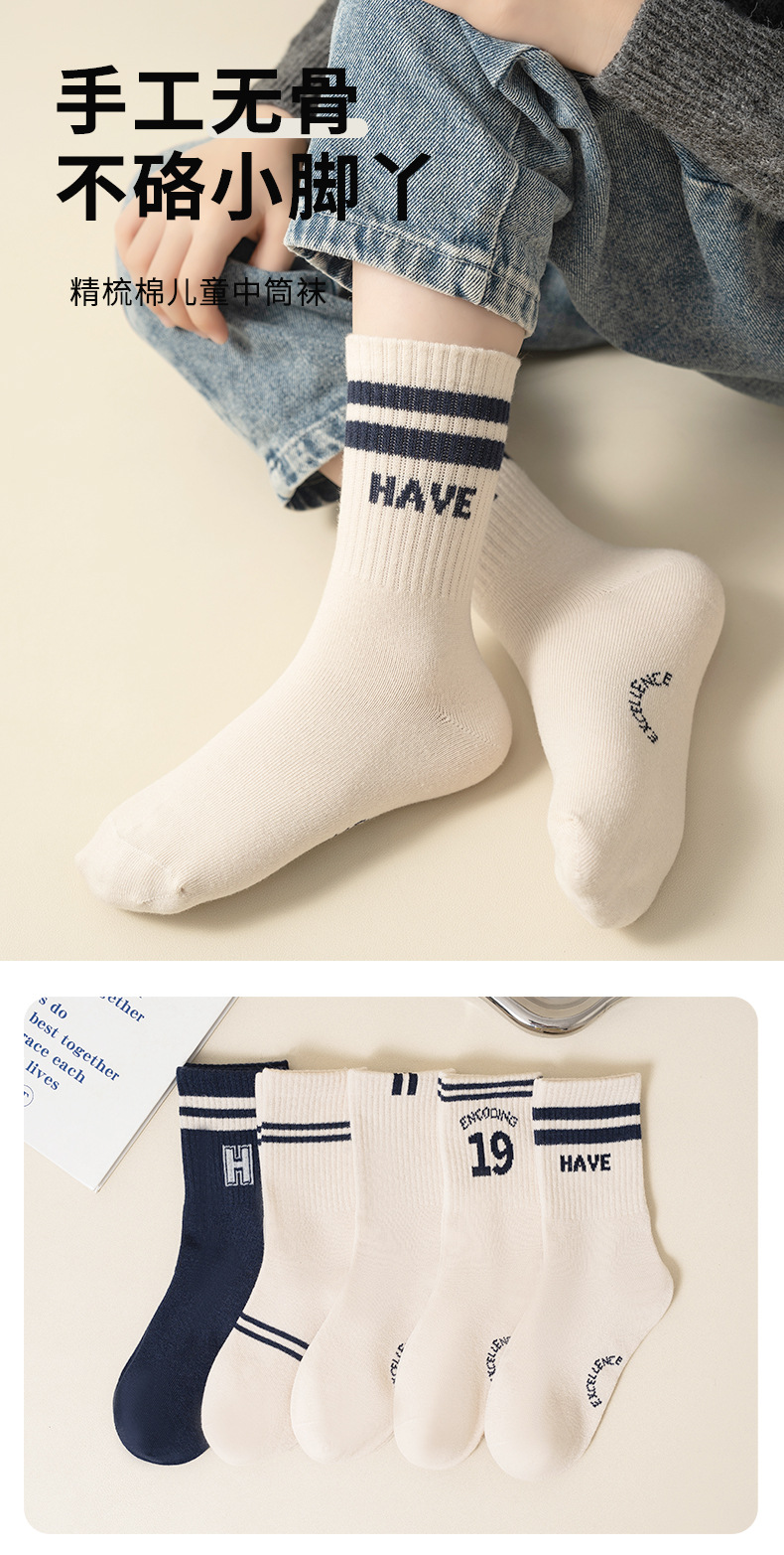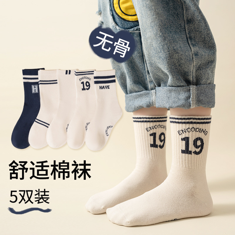 어린이 양말 가을과 겨울 뼈없는 중간 길이 양말 소년의 유행 편지 간단한 긴 배럴 높은 고무 스포츠 학생 양말