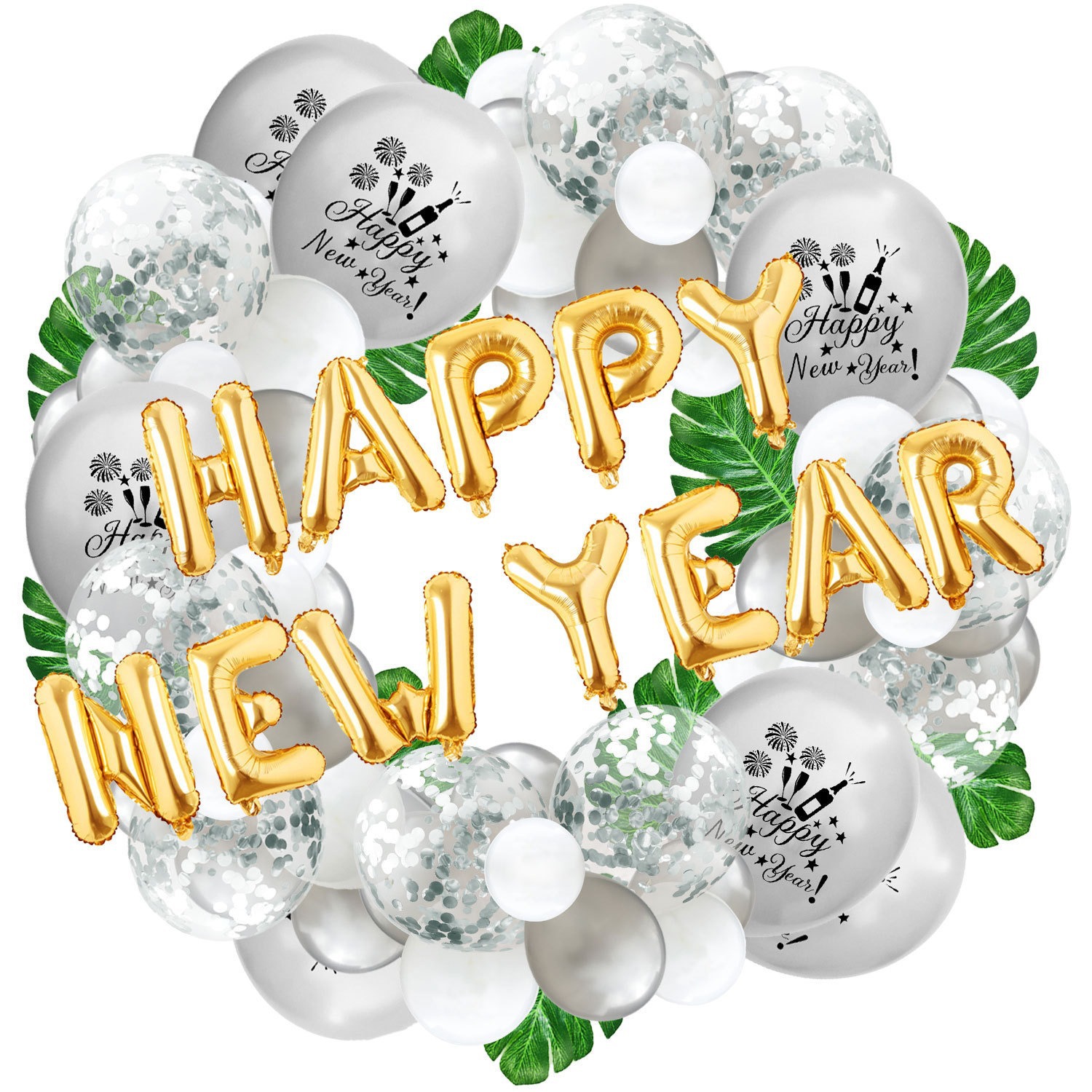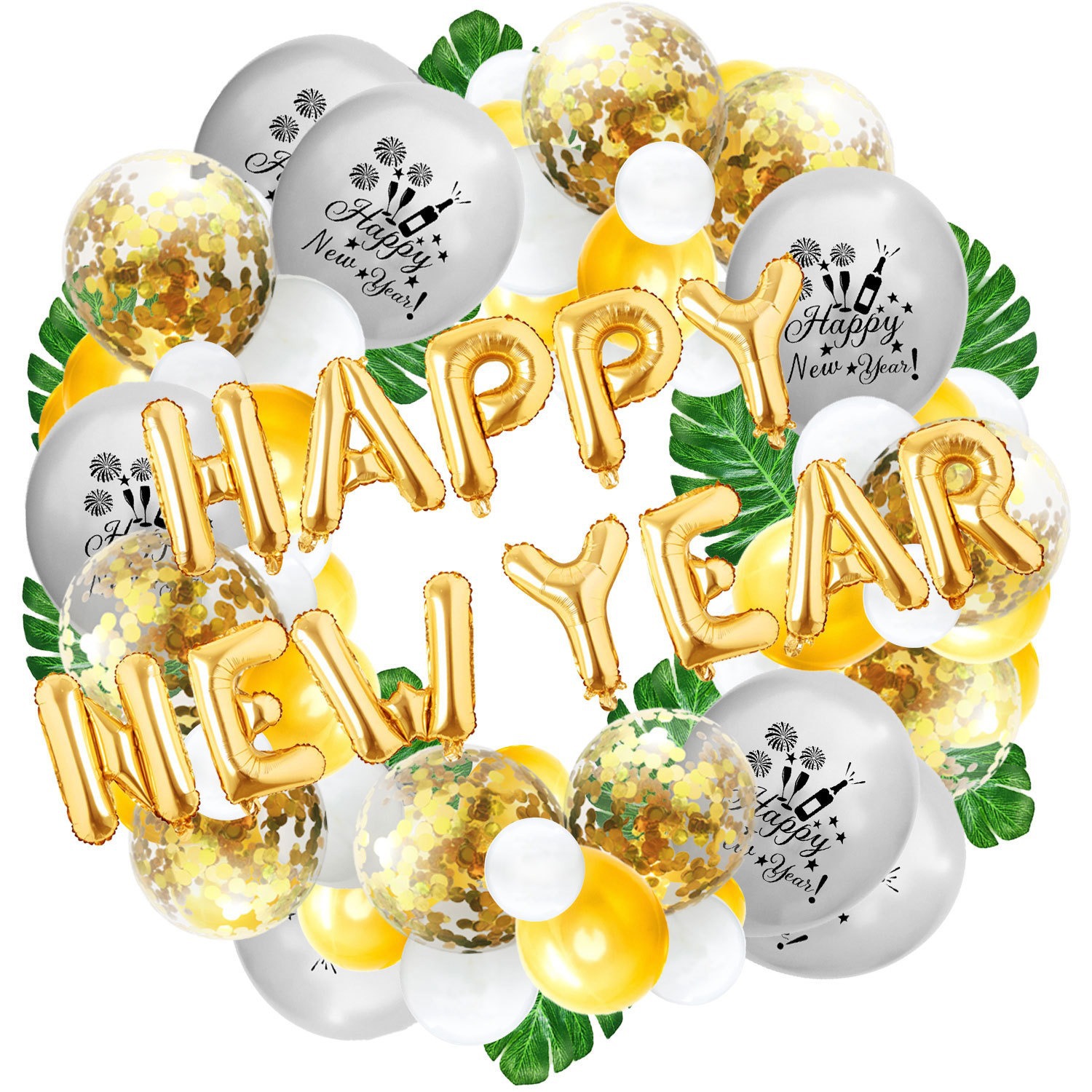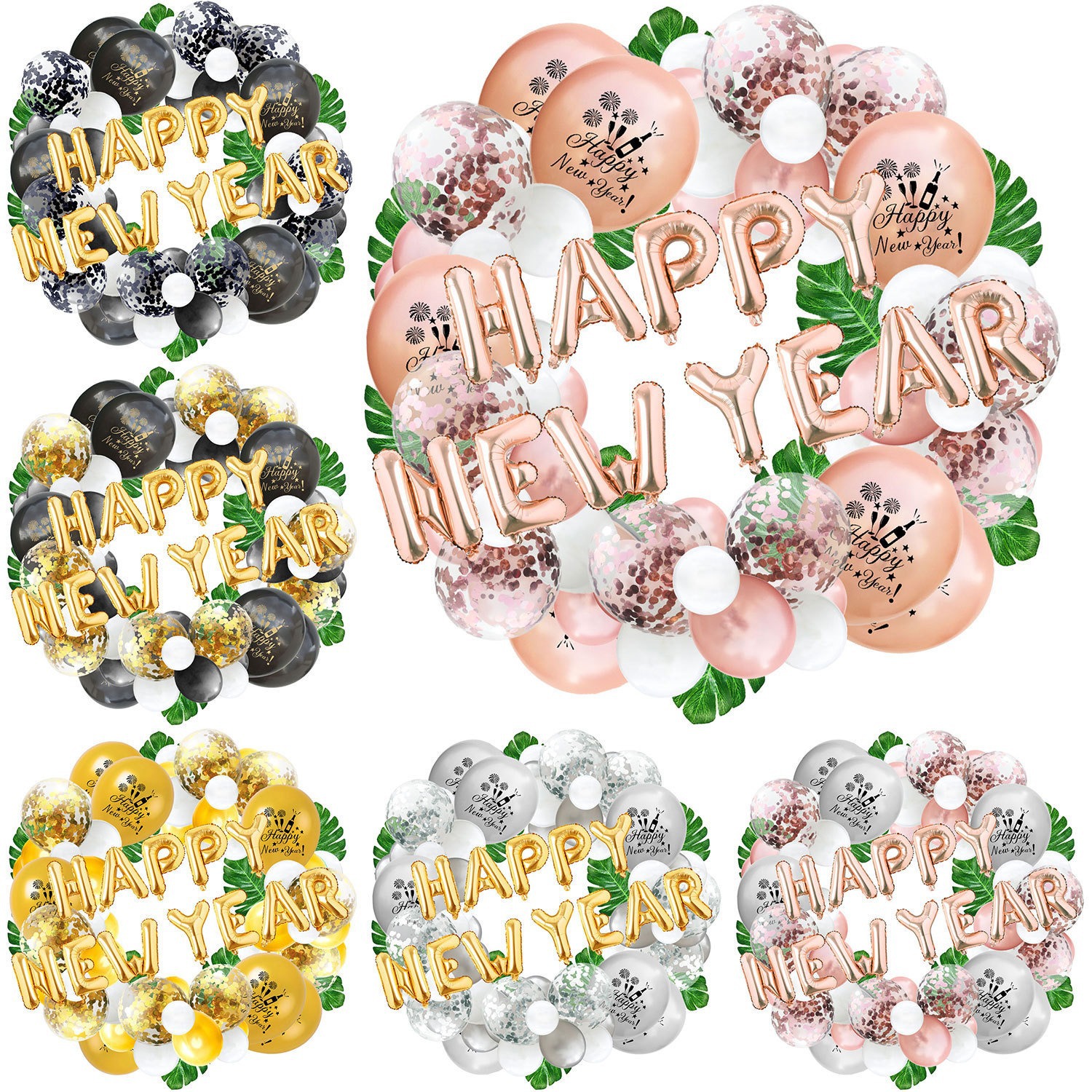 16 인치 해피 뉴 이어 알루미늄 필름 풍선 새해 복 많이 받으세요 Sequin Garland 휴일 장식 세트