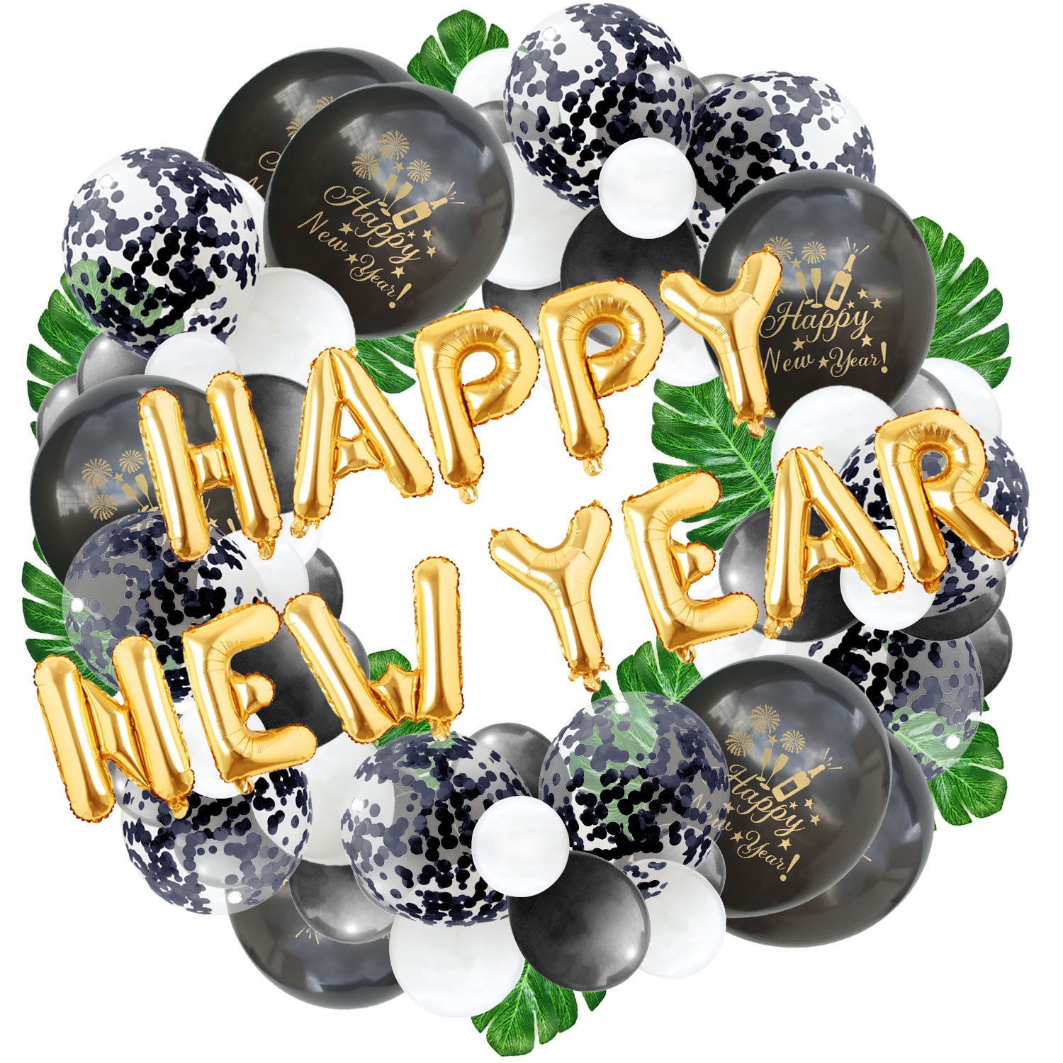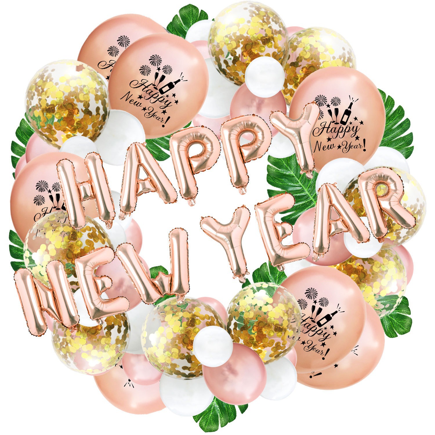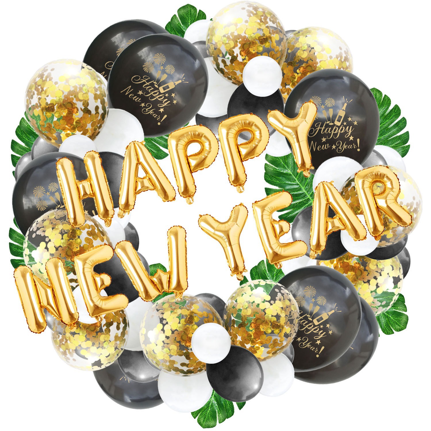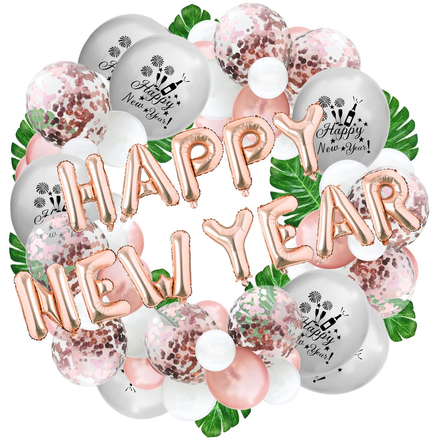16 인치 해피 뉴 이어 알루미늄 필름 풍선 새해 복 많이 받으세요 Sequin Garland 휴일 장식 세트